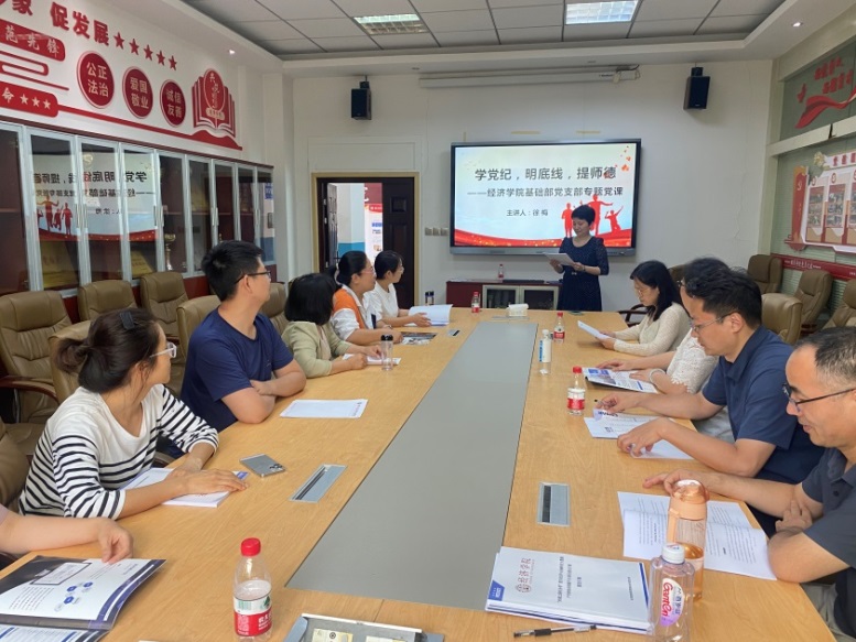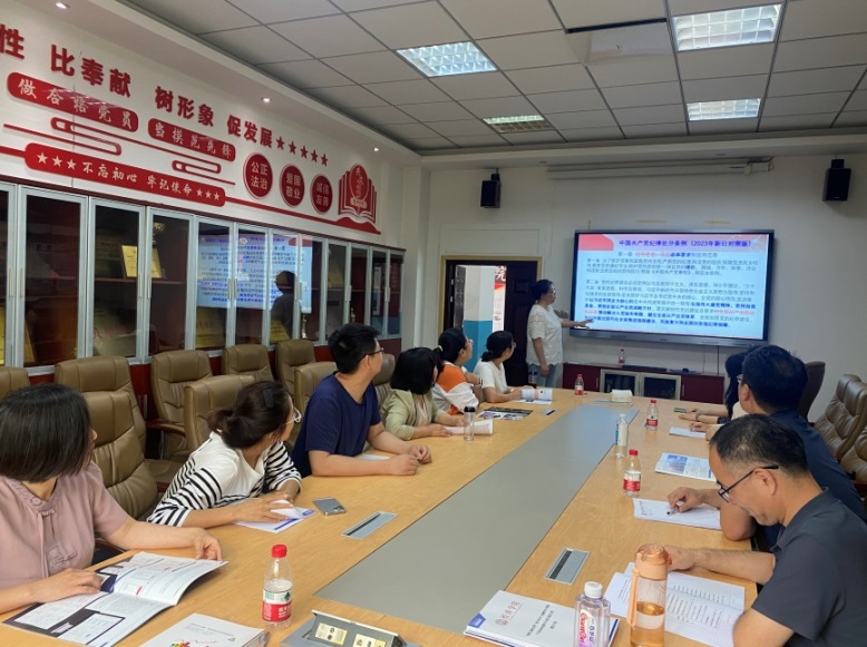 为深入学习贯彻习近平总书记关于党纪学习教育的重要讲话和重要指示精神,深化《中国共产党纪律处分条例》(以下简称《条例》)的理解和运用,6月7日下午,beat365在线唯一官网基础部党支部在关天会议室开展党纪教育主题党日活动,beat365在线唯一官网副院长徐梅为支部党员讲授“学党纪,明底线,守师德”专题党课,支部全体党员参加。本次主题党日活动邀请民主党派、非党员教师代表参加。