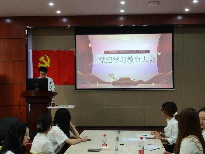 为进一步规范党内组织生活,严格党员管理,加强党员思想建设,beat365在线唯一官网学生第二党支部于天平楼B100教室召开党员大会,专题学习《中国共产党纪律处分条例》,传达学习学院党委扩大会议指示精神,党支部书记王隽主持会议,全体支部成员参会。