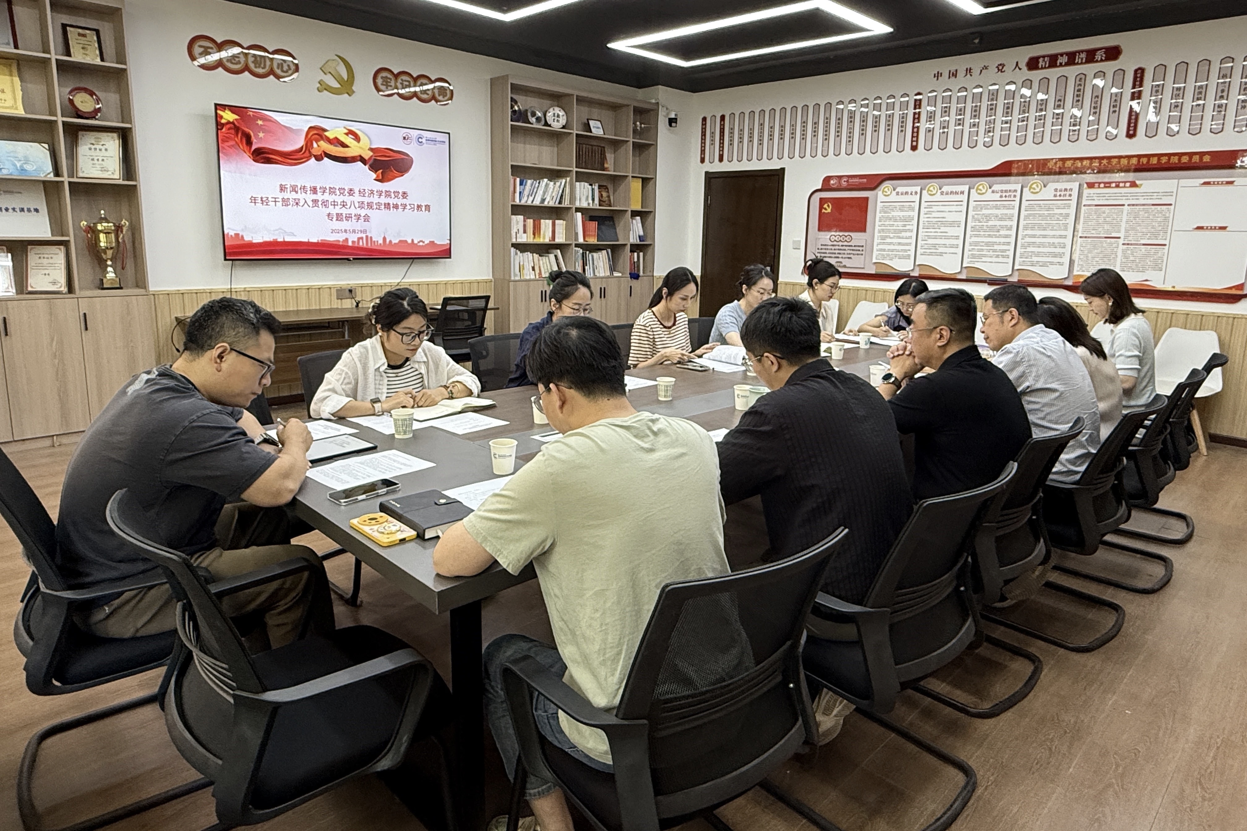 5月29日上午,beat365在线唯一官网党委与新闻传播学院党委在致知楼党员活动室开展两院年轻干部贯彻中央八项规定精神专题研学会,两院年轻干部参加。