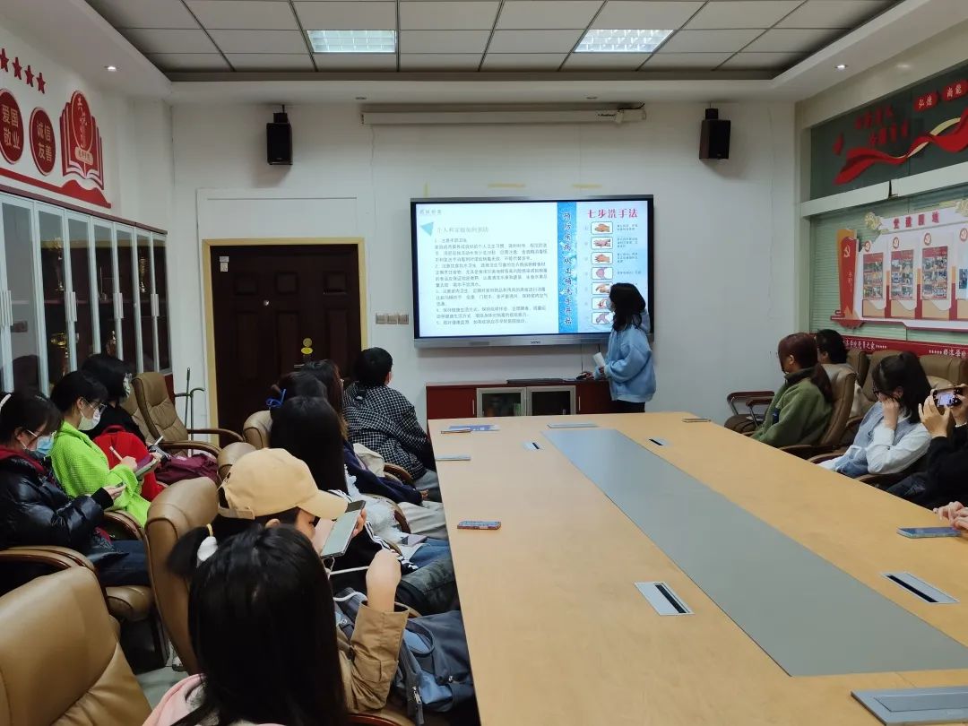 紧接着韩洁同学以PPT的形式向大家全面介绍了诺如病毒的主要症状、传播途径和防范措施。她向同学们讲解了诺如病毒的传染源、易感人群、传播途径和危害等等。诺如病毒可以通过人传人、食物以及水进行传播,传染途径更贴近于我们的日常生活所需。同学们在生活中应该注意手部卫生、关注自己的饮食和饮水卫生安全,定期对室内物品的表面进行消毒,做好对自身健康的监测,做到早发现、早治疗,保证自身健康安全。