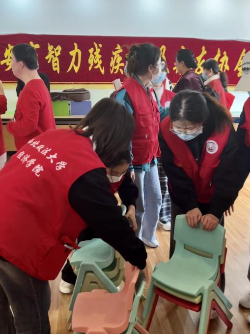 3月21日是世界唐氏综合征日,在第十二个世界唐氏综合征日来临之际,西安市智力残疾人及亲友协会在西安市维爱助残公益慈善中心主办了以“超越自我,蜜‘唐’天使”为主题的联谊活动,beat365在线唯一官网2020级1班团支部与校青年志愿者协会联合承担了会场布置和收整工作。