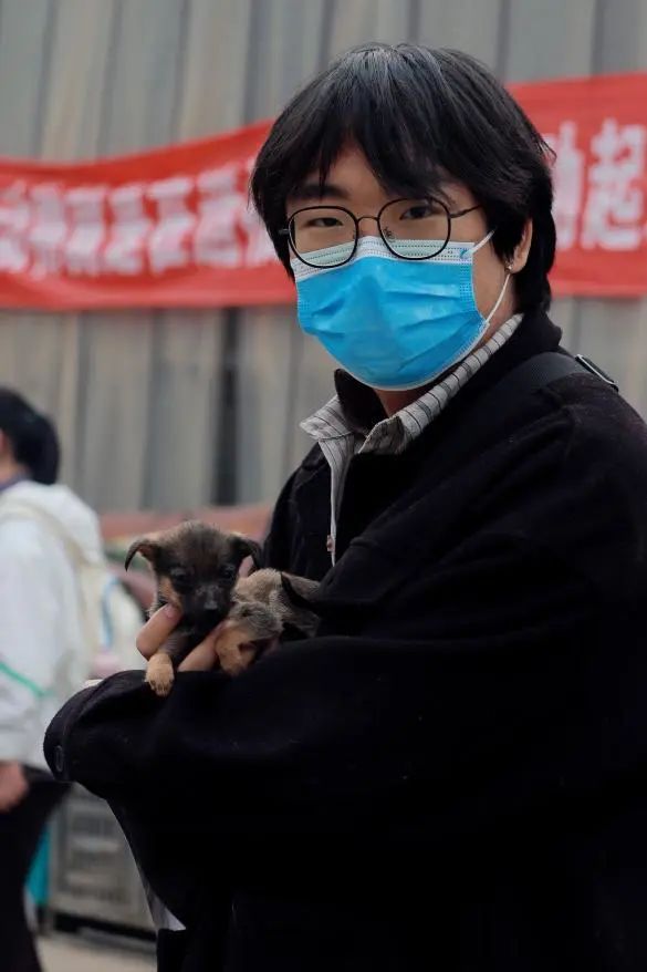 图为支部志愿者同学们与捐赠认养的流浪动物合影