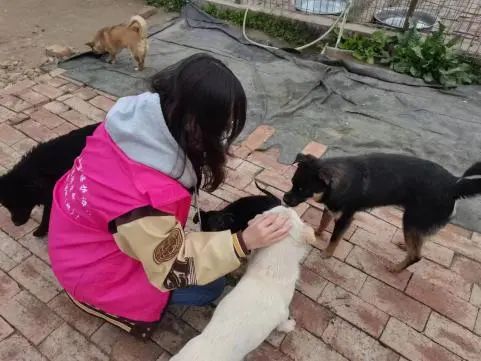 图为支部志愿者同学们与小动物们的互动与投喂