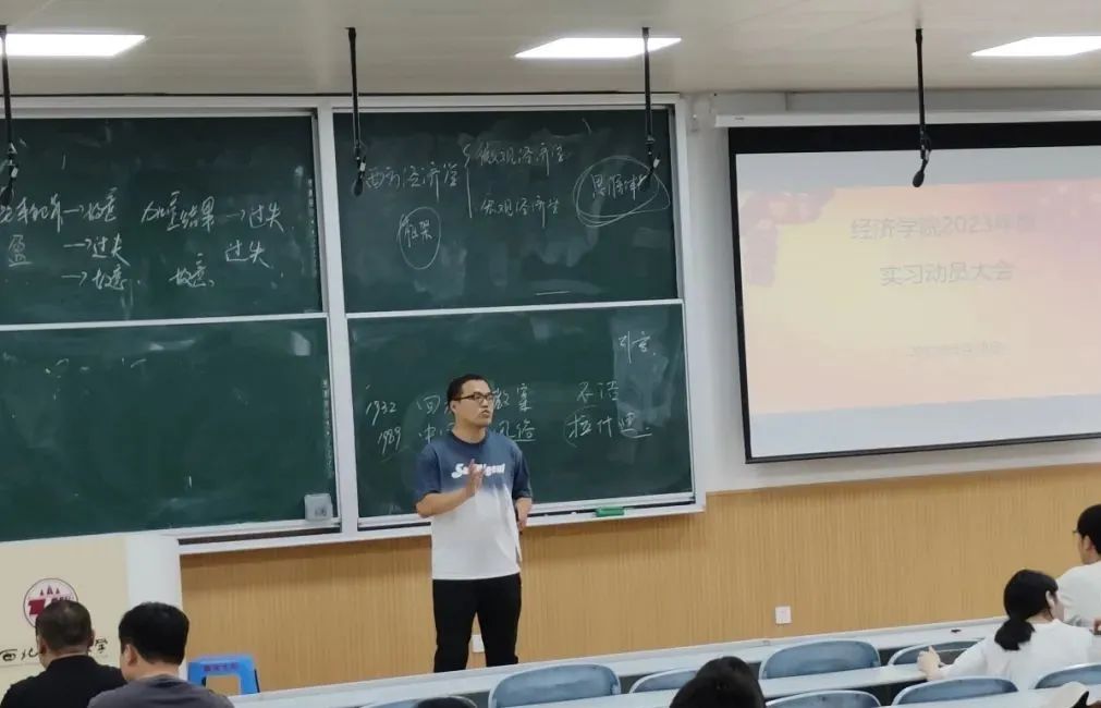 李进武就实习要求、实习注意事项和实习考核评定作了介绍,从多个方面向同学们进行动员讲话。一是提高对实习重要性,必要性的认知,切实端正实习态度;二是做好实习前的各项准备工作,选择合适的安全的实习岗位;三是及时总结实习过程中的收获和不足,及时完成实习日志,为以后的学习和工作打好基础。