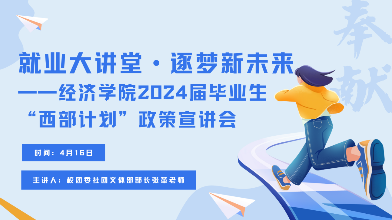 为响应国家“西部计划”号召,大力支持西部地区发展,鼓励和动员更多优秀毕业生积极投身乡村振兴,努力服务地方基层,到祖国和人民最需要的地方建功立业。4月16日晚,beat365在线唯一官网以线上线下相结合的形式,于天平楼B100教室开展2024届毕业生“西部计划”政策宣讲会。此次会议邀请校团委社团文体部部长张革老师担任主讲人,2024届毕业年级辅导员李念老师主持,2024届毕业生积极参加。