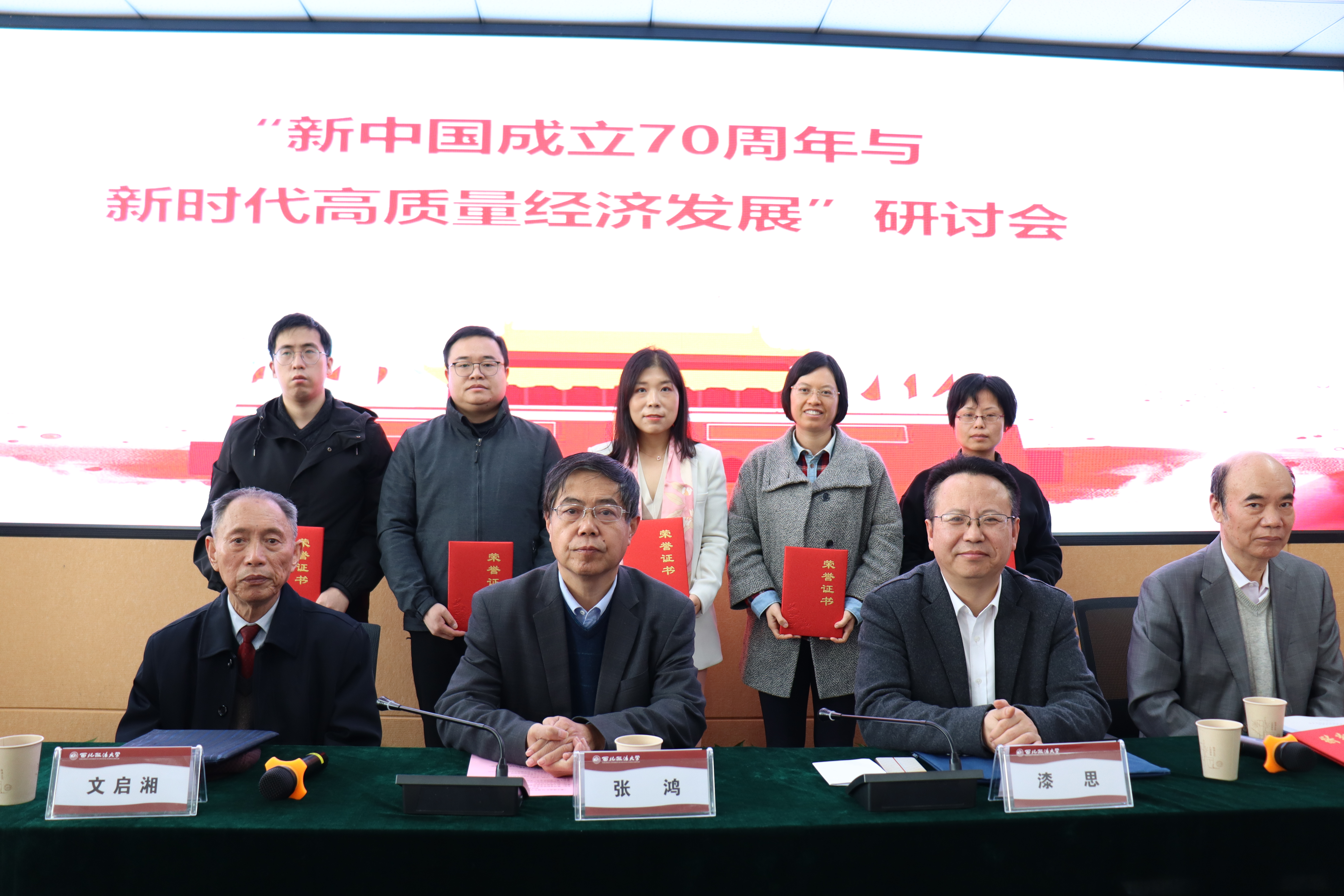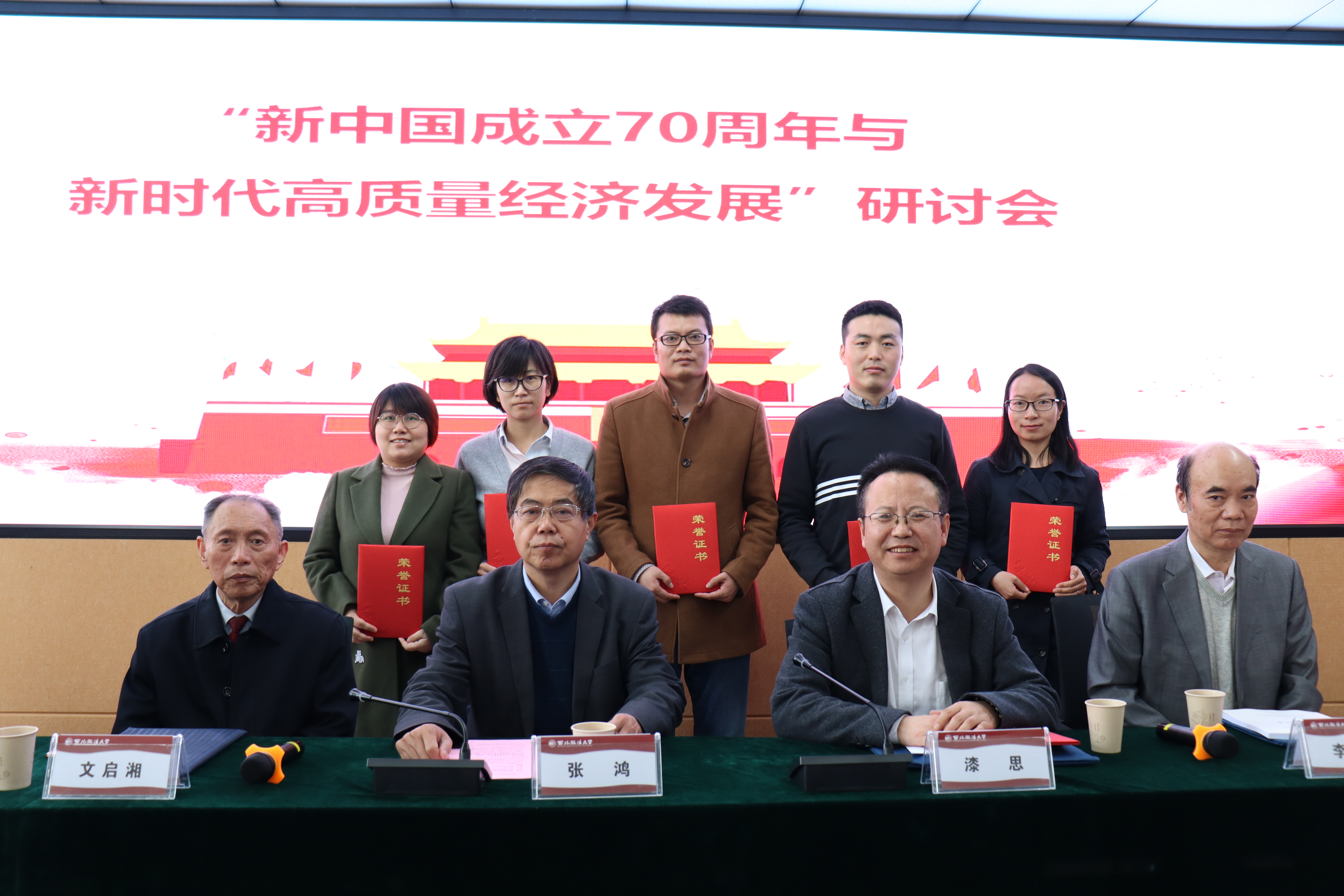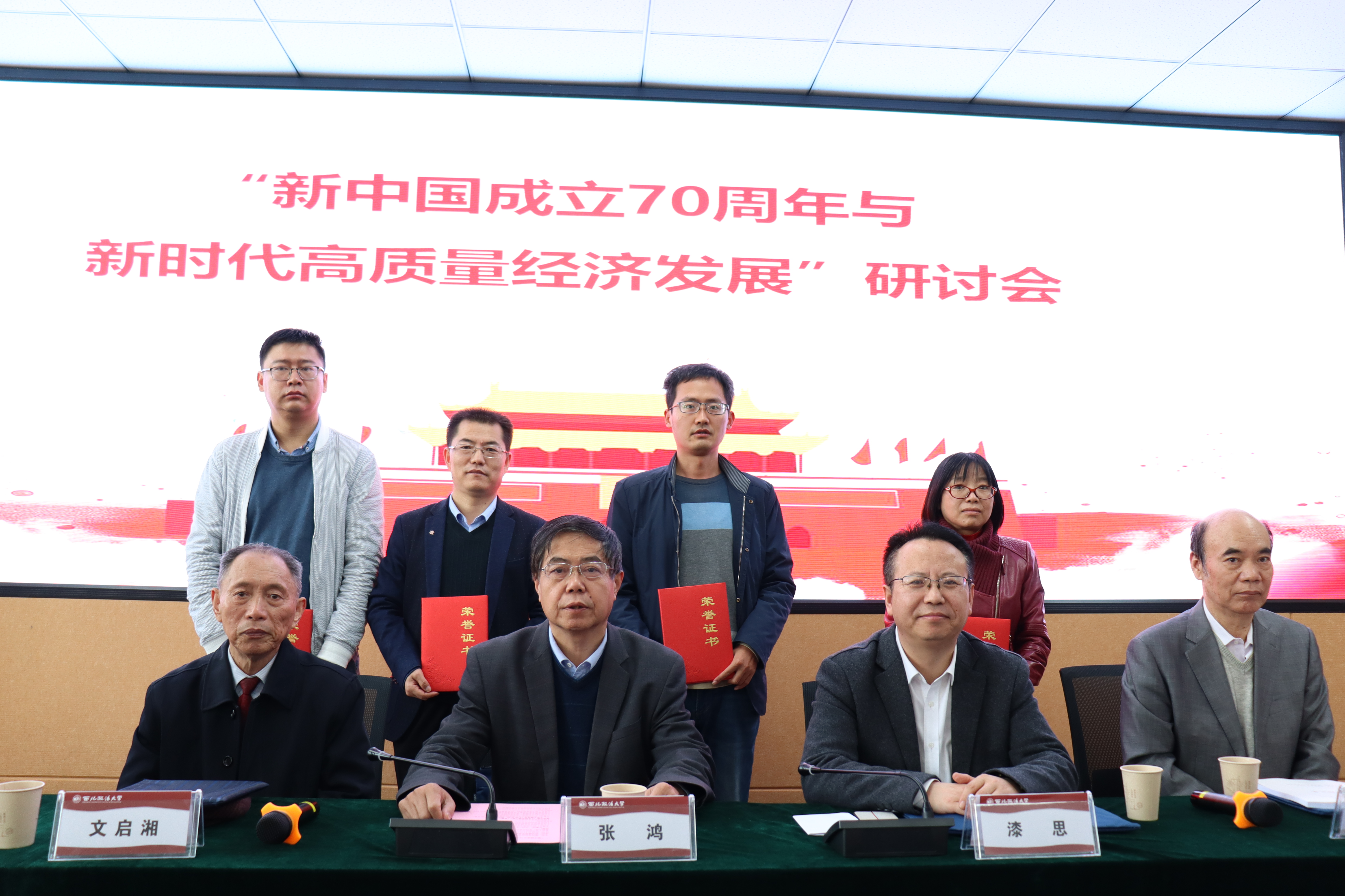 研讨会分为开幕式和大会发言两个阶段。beat365在线唯一官网副校长漆思教授对各位学者、专家到来表示热烈欢迎,对会议主办方陕西省经济学学会表示衷心感谢,并简要介绍了学校历史沿革、beat365在线唯一官网近期发展概况和取得的成绩。陕西省经济学学会会长张鸿教授对beat365官网beat365在线唯一官网承办本次会议表示诚挚感谢,对与会专家、学者表示热烈欢迎,并围绕“新时代”“高质量”充分肯定了本次研讨会召开的重要意义。随后,研讨会还进行了优秀论文颁奖仪式,对获奖者进行嘉奖。