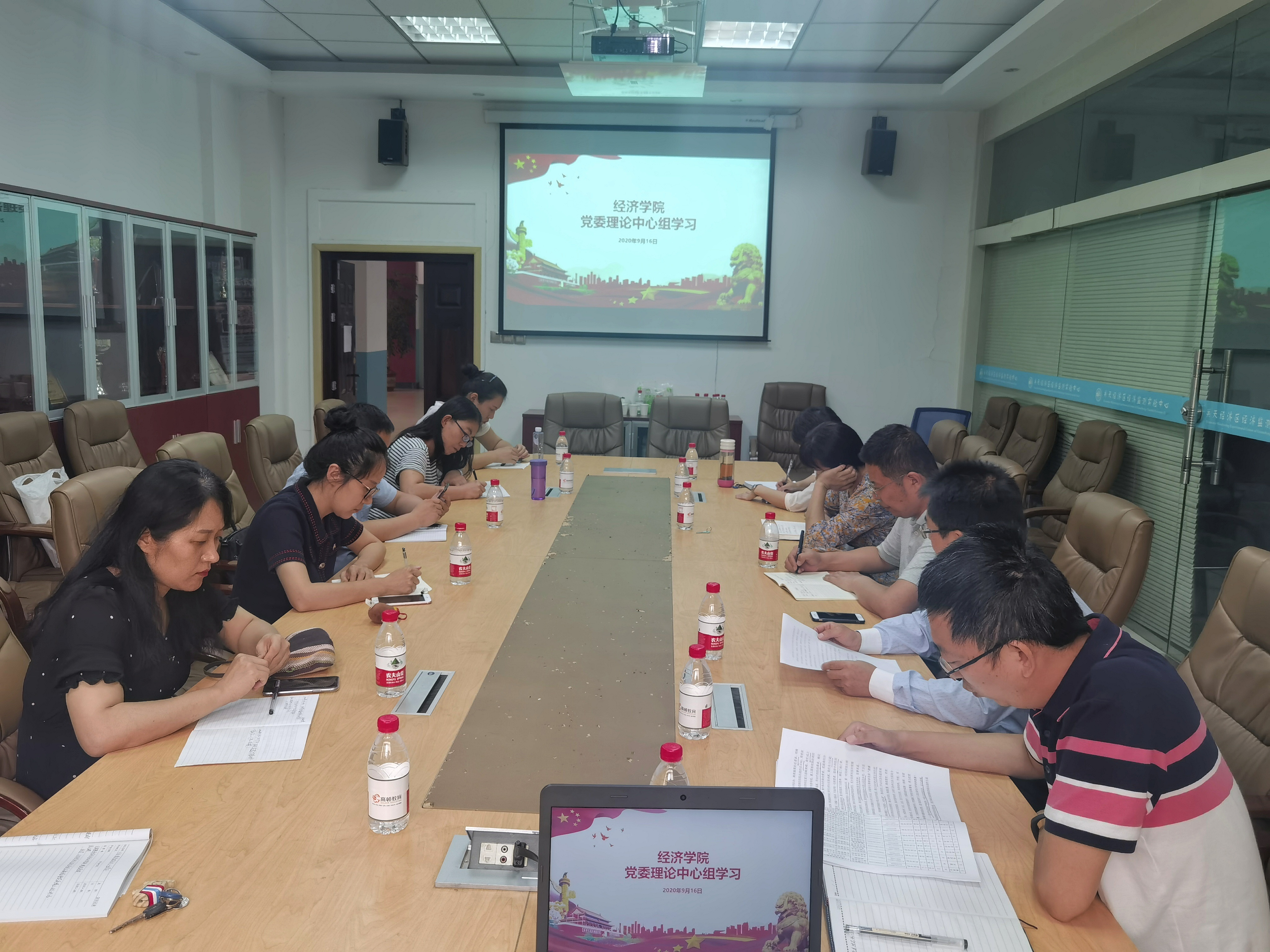会上,副书记张文渊领学了习近平总书记在全国抗击新冠肺炎疫情表彰大会上的讲话;副院长王胜利带领大家重温了习近平总书记在十八届中央政治局第二十八次集体学习时的讲话《不断开拓当代中国马克思主义政治经济学新境界》;王森传达学习了习近平总书记在十九届中央政治局第二十一次集体学习时的讲话《贯彻落实新时代党的组织路线 不断把党建设得更加坚强有力》