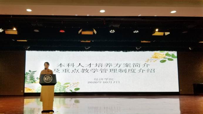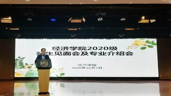 会议第三部分,2020级新生按照专业类别分别在四间教室进行了专业介绍会。学院安铁通、王雯婧、陈锋、曹潇等老师分别代表经济学、国际经济与贸易、金融学以及金融工程专业进行发言,向新同学细致地介绍了各自的专业特色、课程结构等内容,让新生对自己所在专业有更深入的认识。老师们一致希望大家能够珍惜时光,善用资源,在大学期间增长真才实学。