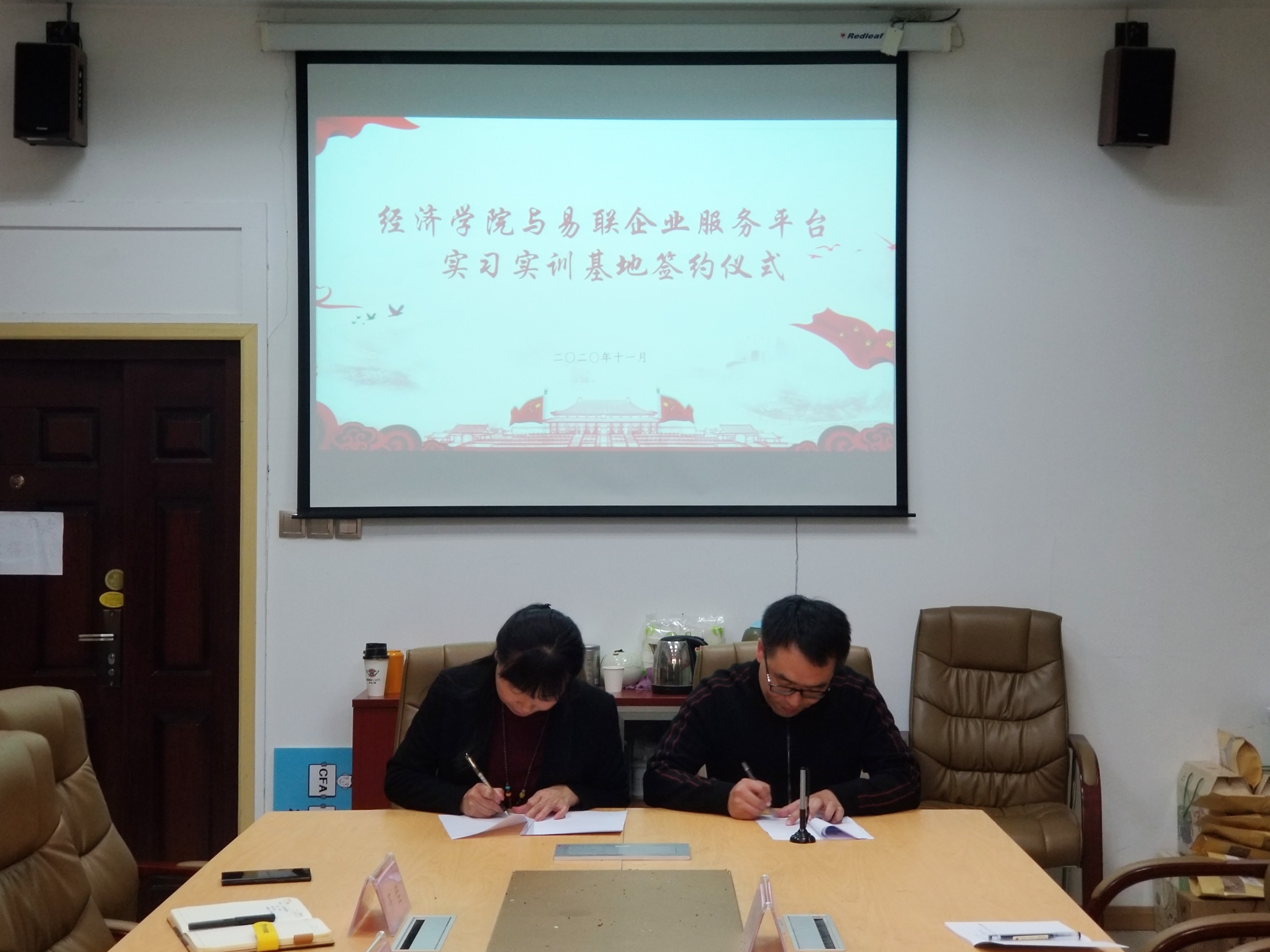 11月4日下午,易联企业服务平台与beat365在线唯一官网在beat365在线唯一官网长安校区beat365在线唯一官网关天会议室举行实践基地共建合作协议签约仪式。易联企业服务平台董事长薛庆歌、副总经理孙彦东、技术总监张鑫鹏、办公室主任任金国,beat365在线唯一官网院长赵云君、党委副书记张文渊、副院长徐梅、2018级辅导员齐佳出席签约仪式。薛庆歌和赵云君分别代表双方签署实践基地共建合作协议。