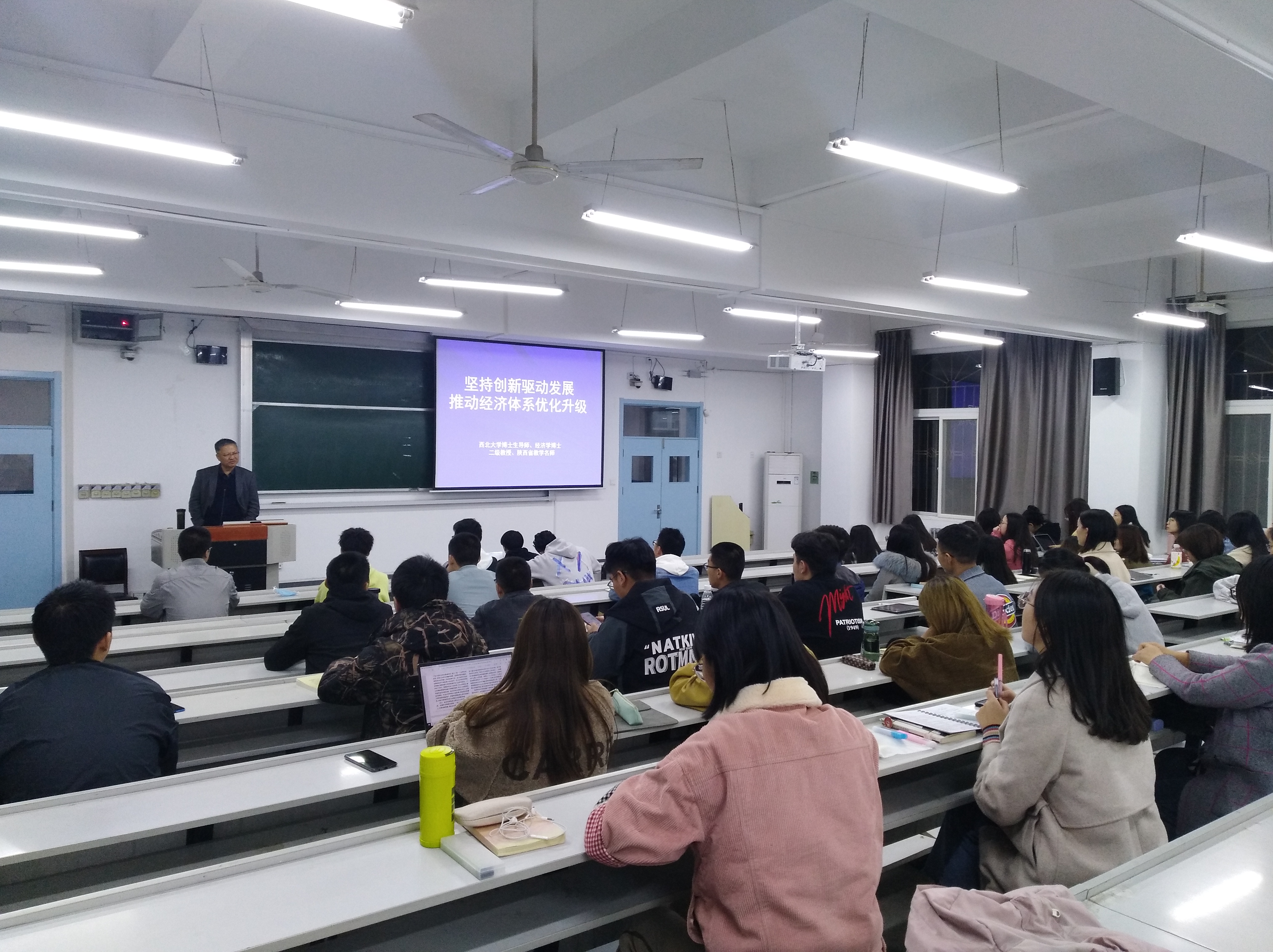 11月9日晚,西北大学博士生导师惠宁教授应邀来beat365官网作了题为“坚持创新驱动发展,推动经济体系优化升级”的学术讲座,学院全体研究生参加报告会,报告由学院副院长王胜利教授主持。