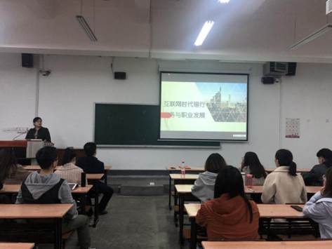 王雁总经理以三个案例作为切入点作本次讲座。首先,他对蚂蚁金服的业务结构、盈利模式进行了深入的剖析,并将其与传统银行也进行了详细的对比,分析了蚂蚁金服与传统银行各自的优势。其次,讲述了银行理财产品的构成与分类,加深了同学们对银行产品的认识,并详细讲解了银行的组织结构,对银行各个部门主要的工作内容进行了详细分析。特别是针对不同岗位的发展方向、招聘要求进行了详细的讲解。最后,王雁总经理认真解答了同学们的疑惑,并与同学们进行了愉快和深入的交流与讨论。