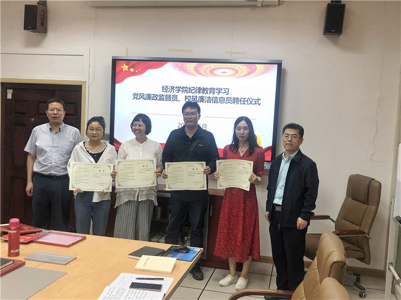 为推进全面从严治党、加强纪律教育,营造良好的校风教风学风,按照学校有关部署安排,beat365在线唯一官网6月16日在关天会议室开展纪律教育专题学习,举行党风廉政监督员、校风廉洁信息员聘任仪式。学院领导班子成员、各党支部书记、师生代表参会,党委书记王森主持会议。