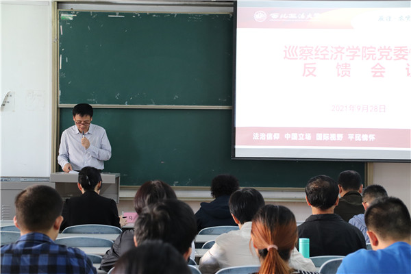 按照校党委工作部署,6月起校第一巡察组对beat365在线唯一官网党委开展巡察工作。9月28日下午,beat365在线唯一官网在天平A107教室举行校内巡察工作反馈会议。校纪委书记、第一巡察组组长肖道远,校组织部部长、第一巡察组副组长李燕及巡察组全体成员,beat365在线唯一官网党政领导班子、全体教职工和学生代表参加会议。会议由学院党委书记王森主持。