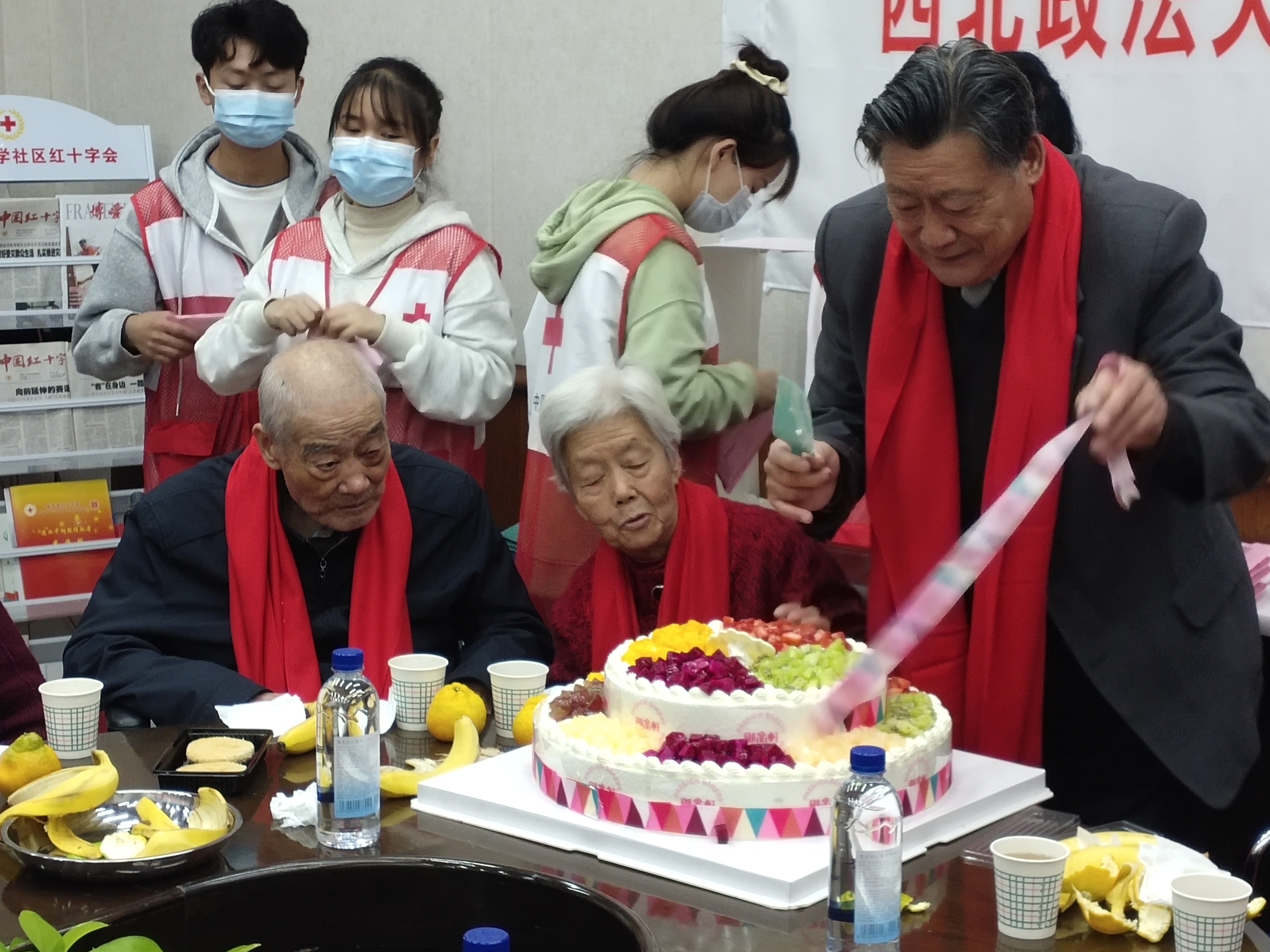 活动现场气氛热烈,志愿者们为老党员老教师献上精心准备的礼物“红围巾”,营造出一片火热的氛围,围巾戴在老人们肩头,更暖在他们的心田。金山副主席和张文渊副书记在致辞中传达了习近平总书记对老龄工作的重要指示精神,并向老党员老教师们致以崇高的敬意和衷心的祝福。他们讲到,老党员老教师是党和国家、学校发展历程的亲历者和见证人,是我们的宝贵财富,我们一定要传承好老一辈的艰苦奋斗精神,把党和国家的伟大历史学好,把老一辈的优良传统发扬好。
