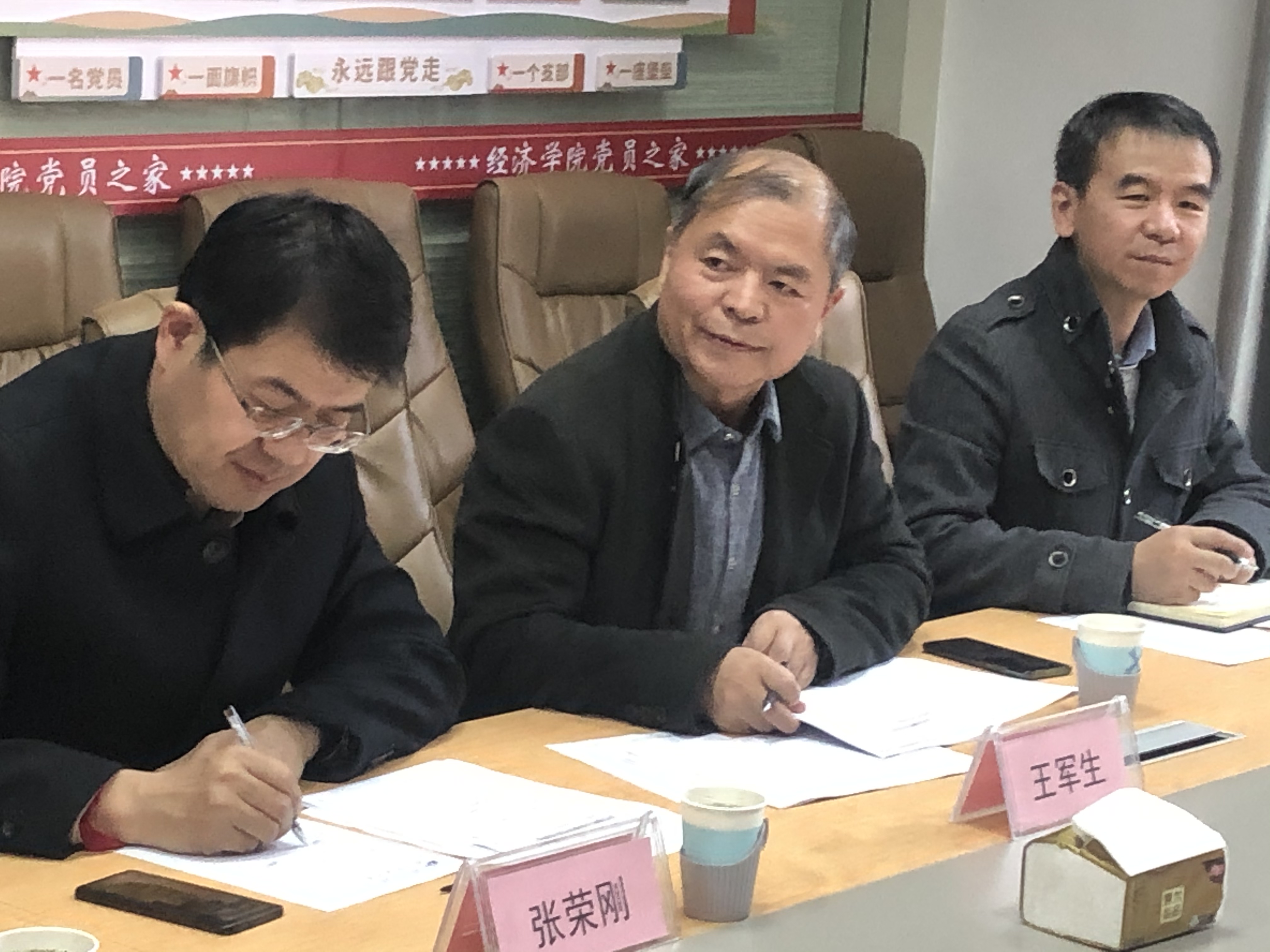 张荣刚代表学校致欢迎辞,对各位专家的莅临指导表示欢迎和感谢,他表示学校高度重视学位授权点专项评估工作,本着以评促建、评建结合的思路,认真做好金融硕士人才培养体系的改进和完善工作,希望各位专家提出宝贵意见和建议。