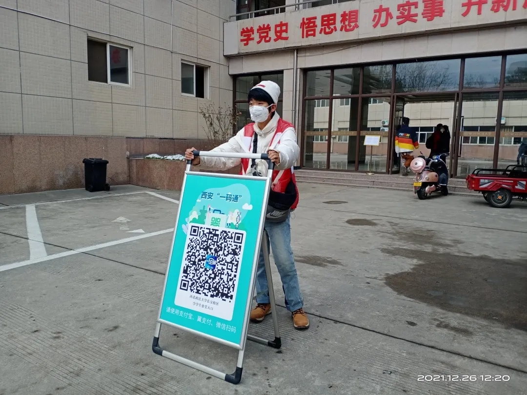 2020级邹金娜表示:“在这疫情防控形势最为严峻的时刻,作为青年志愿者我主动加入到疫情防控志愿服务中去。从维持核酸检测队伍的秩序、提醒同学们保持间距,到穿上防护服协助医护人员采样等等,这其中有辛酸,但更多的是感动。在寒冷的黑夜,在大雪纷飞时,志愿者们始终坚守岗位,为疫情防控贡献自己的一份力量。通过参与疫情防控志愿服务,我不仅收获了感动,也培养了自己坚韧的品格。隔离病毒,不隔离爱!我相信,在所有人的努力下,西安定能迎来春暖花开的一天!长安终会常安,西安定会平安!”