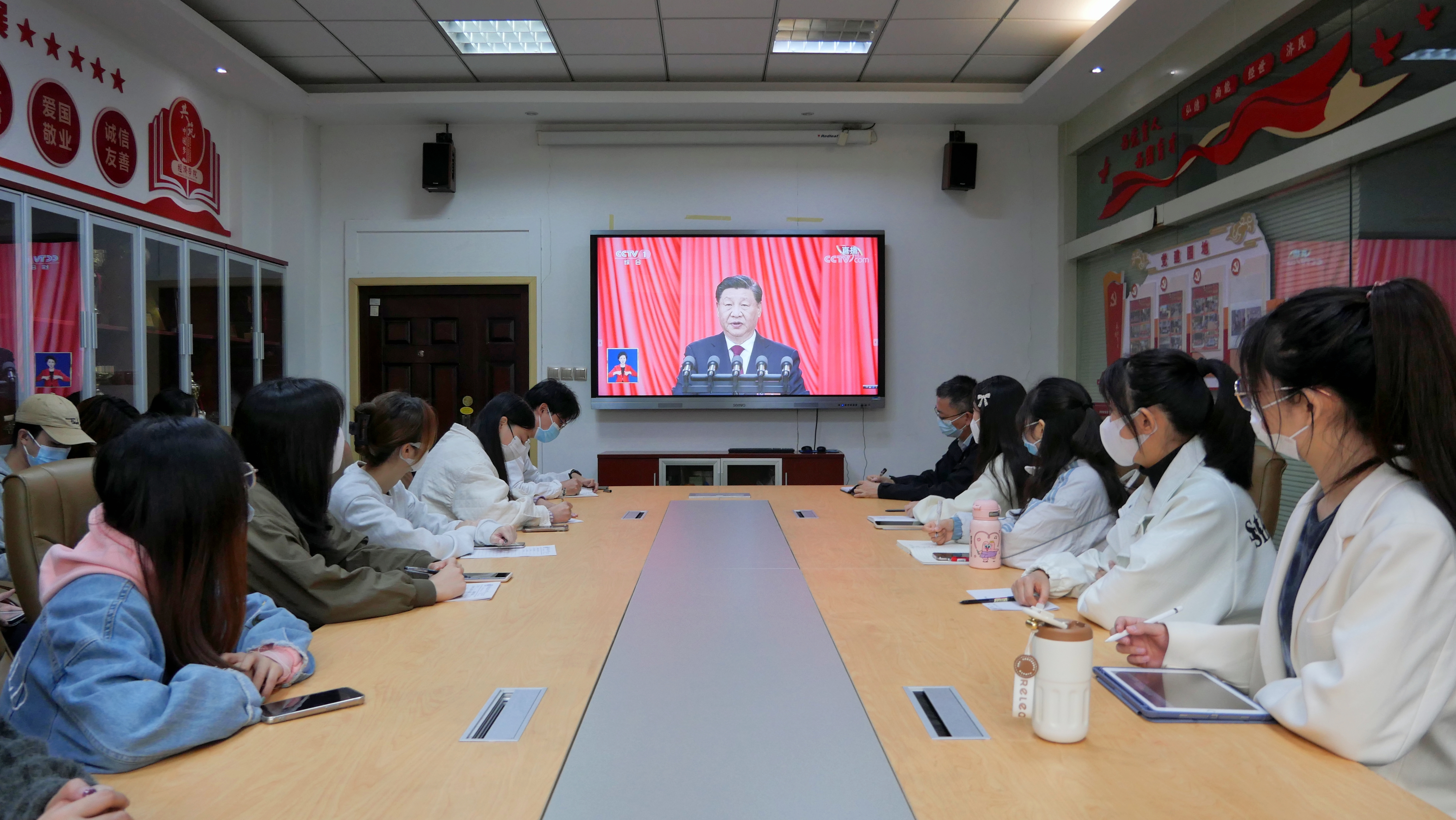 10月16日,中国共产党第二十次全国代表大会在北京人民大会堂隆重开幕。beat365在线唯一官网组织师生以线上线下相结合的方式收看中国共产党第二十次全国代表大会开幕会直播。学院领导班子成员、师生党员代表20人在长安校区关天会议室集中收看,其余师生党员200余人通过新闻网站、客户端、电视频道、新媒体平台等多种形式,线上收看大会直播实况,学习习近平总书记在开幕会上的重要讲话精神并展开讨论。