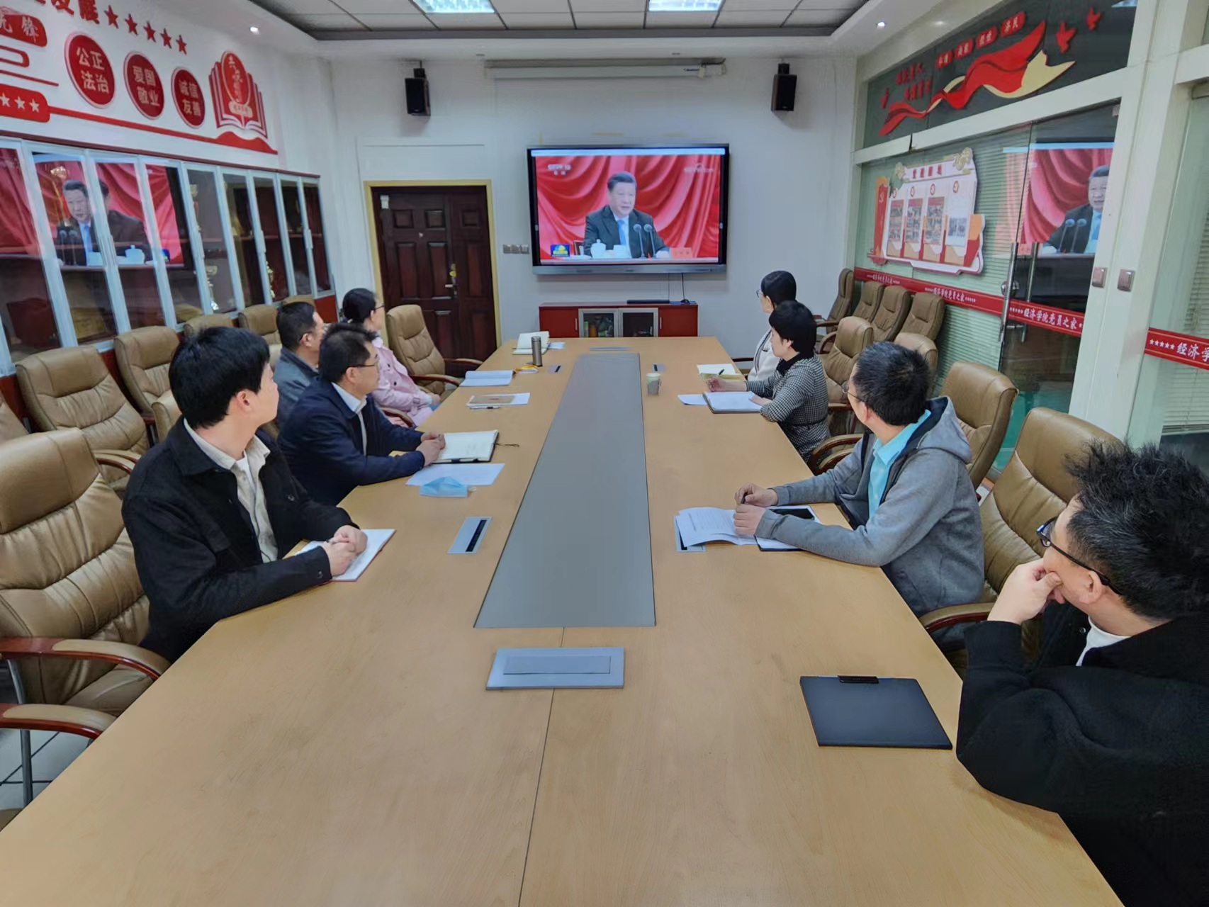 3月9日上午,beat365在线唯一官网党委理论中心组(扩大)在长安校区关天会议室组织集体学习,学院领导班子成员、各党支部书记、教师代表参加学习会议,党委书记王森主持会议。