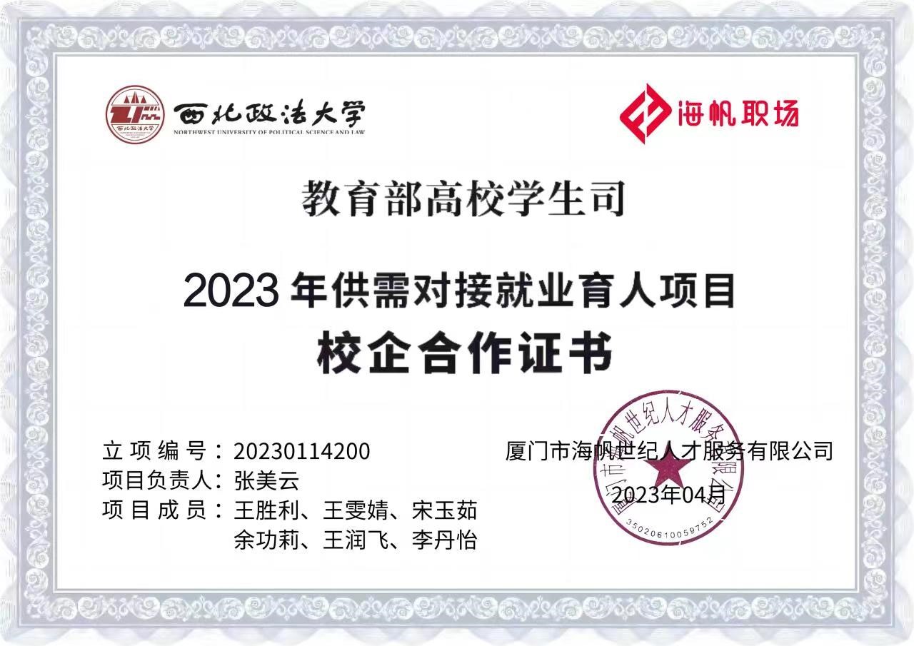 4月6日,教育部高校学生司印发《关于公布第二期供需对接就业育人项目立项名单的通知》(教学司函〔2023〕6号),beat365在线唯一官网张美云老师申报主持的一项供需对接就业育人项目(就业实习基地类别)获批立项,合作企业为厦门市海帆世纪人才服务有限公司。