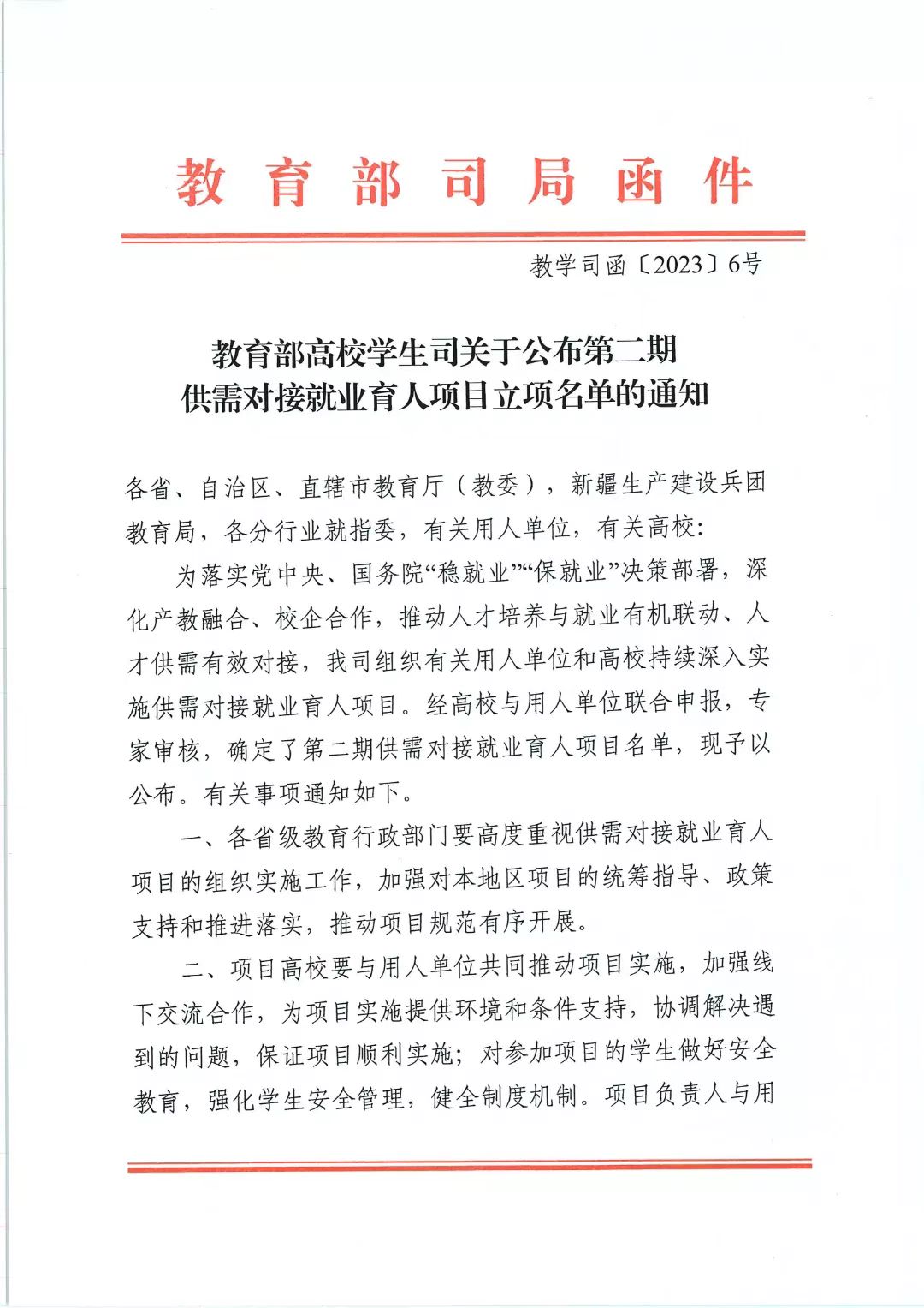 据悉,教育部供需对接就业项目是贯彻党的二十大精神、全面落实党中央、国务院对高校毕业生就业创业工作决策部署、深化产教融合与校企合作、推动人才培养与就业工作有机联动、推动人才供需有效对接的重要举措。