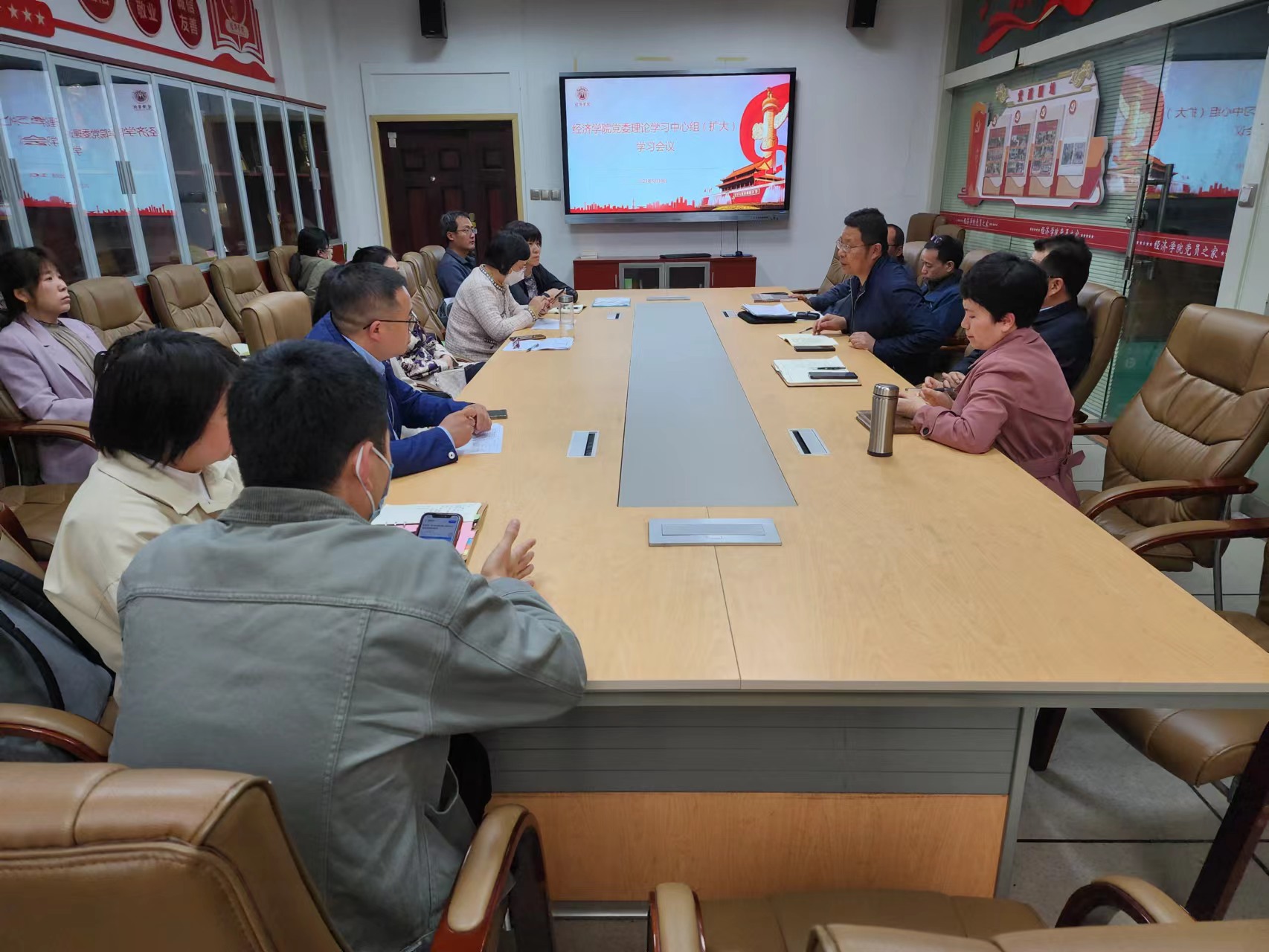 5月10日下午,beat365在线唯一官网党委在长安校区关天会议室召开理论学习中心组(扩大)学习会议暨主题教育工作推进会议,学院班子成员、党支部书记、系(部)主任、教师代表参会,会议由党委书记王森主持。