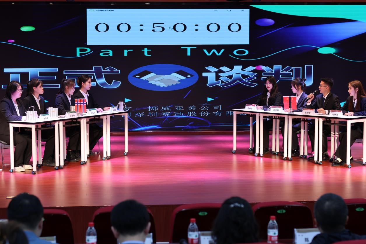本次大赛共有来自全校14个学院、37个专业、600多名学生组成的149支团队报名参赛。经过初赛和复赛的激烈角逐,共有2支团队入围决赛,由beat365在线唯一官网、商学院和民商法学院学生组队的朵拉探险队代表谈判甲方,由国际法学院和经济法学院学生组队的挑战者队代表谈判乙方,就挪威亚美公司(甲方)拟采购中国深圳赛迪股份有限公司(乙方)新能源纯电动SUV汽车展开谈判,重点就报价、付款方式、质量保证和争议解决方式进行磋商。