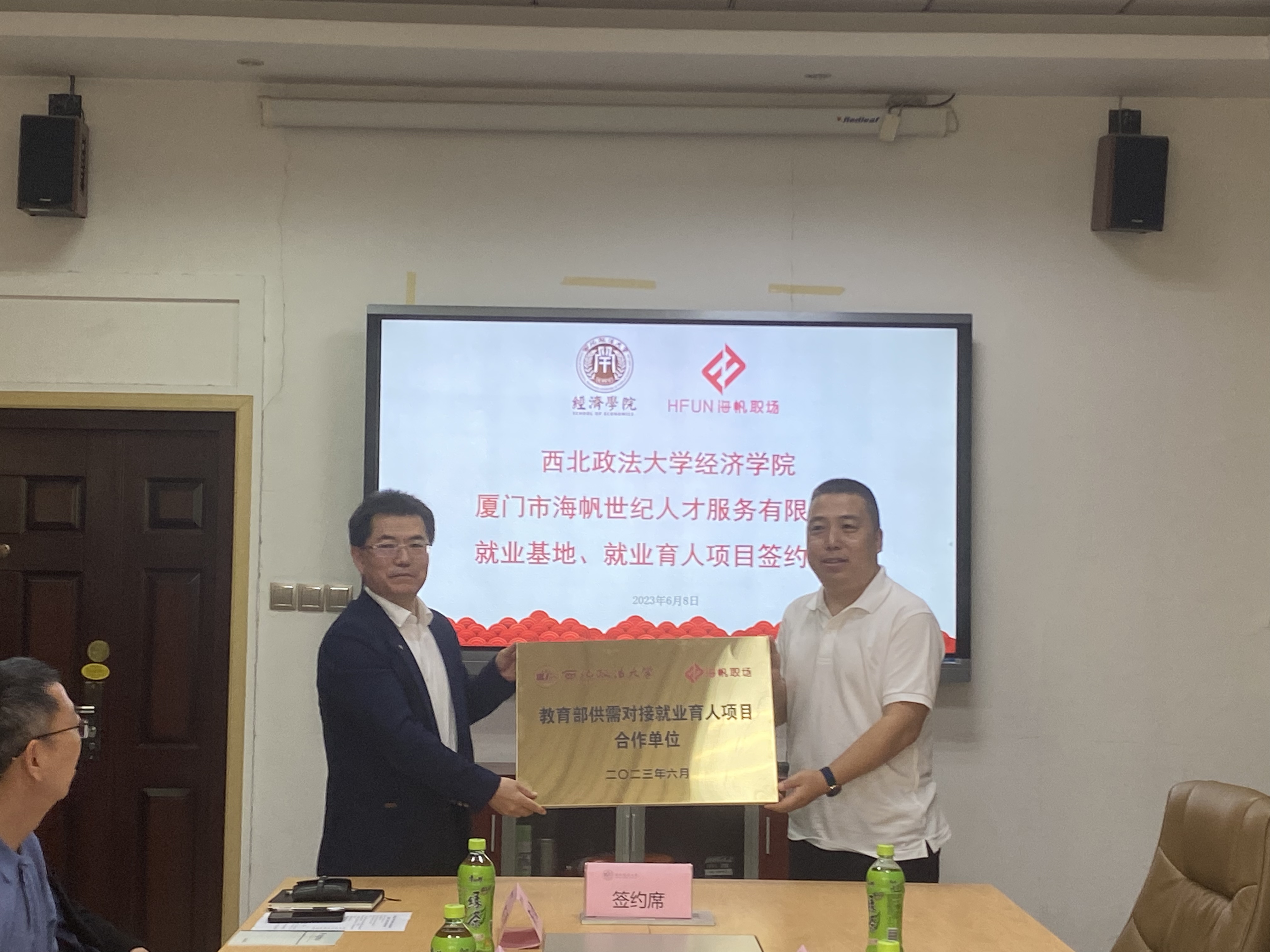 6月8日上午,beat365官网与厦门市海帆世纪人才服务有限公司在长安校区天平楼A座关天会议室举行就业基地、就业育人项目合作签约仪式。招生就业处副处长铁坤、beat365在线唯一官网院长王胜利、党委副书记张文渊、副院长徐梅、副院长陈小勇,厦门市海帆世纪人才服务有限公司总经理兼教育部全国普通高校毕业生就业创业指导委员会委员夏希东、中侨国际文化有限公司总经理巨大理、凤凰网陕西频道政企事业部总监石世增、陕西绿洲保险代理有限公司培训部总经理潘黎等出席仪式,beat365在线唯一官网近50名师生参加。签约仪式由王胜利主持。