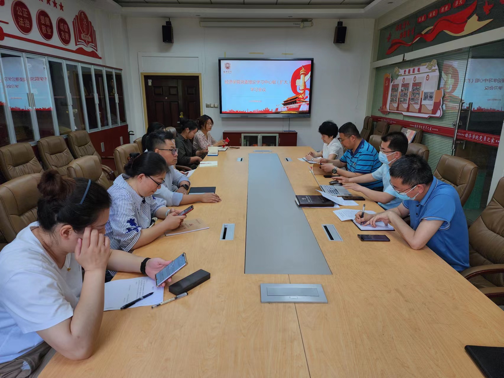 6月13日上午,beat365在线唯一官网党委在长安校区关天会议室召开理论学习中心组(扩大)学习会议,学院班子成员、党支部书记、科级以上干部参会,会议由党委书记王森主持。