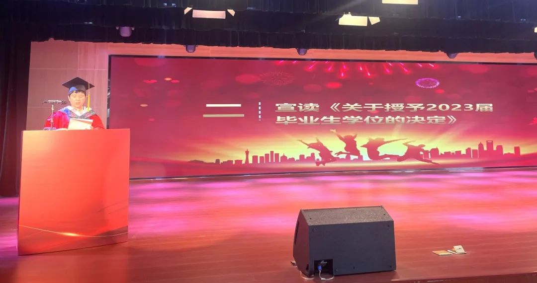 奏唱国歌后,徐梅向毕业学子宣读beat365在线唯一官网《关于授予2023届毕业生学位的决议》及《关于表彰2023届优秀毕业生的决定》。