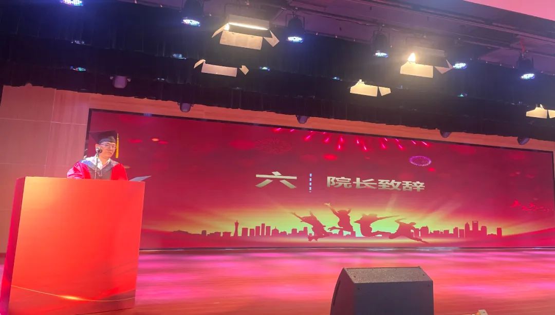 教师代表王雯婧在发言中表示,希望毕业的学子们走向社会后依然坚持做勇敢青年、有为青年、进步青年、善于合作的青年、智慧青年和有修为的青年。她祝愿同学们心怀憧憬,扬帆起航,乘风破浪,勇敢前行。也叮嘱大家不忘母校,常回家看看。