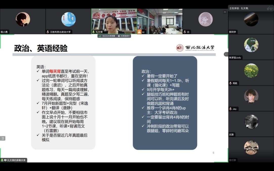 2020级理论经济学硕士研究生董原已被陕西师范大学国际商学院录取为2023级博士研究生,他向与会师生分享了在beat365在线唯一官网读硕士研究生期间的经历和感受,以及自己备考陕西师范大学国际商学院博士的经验。