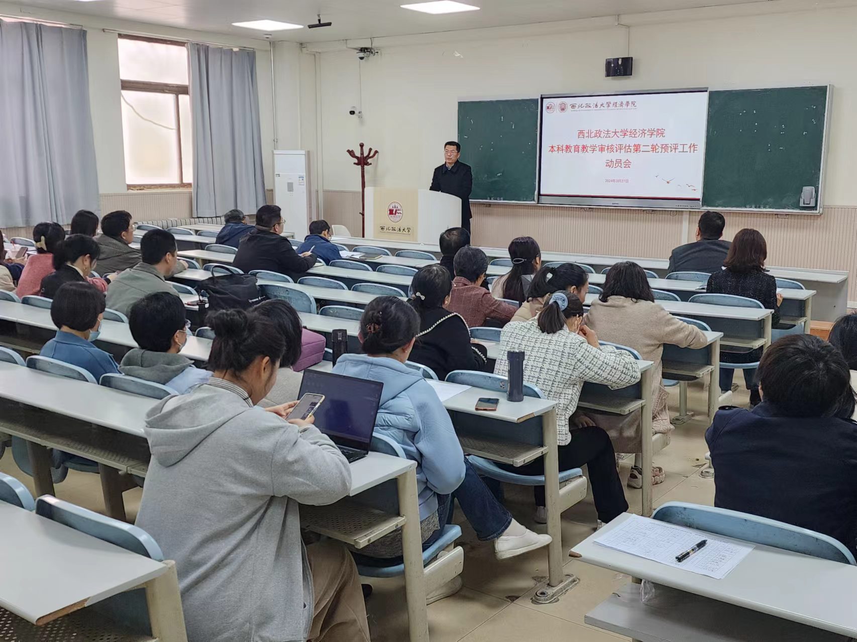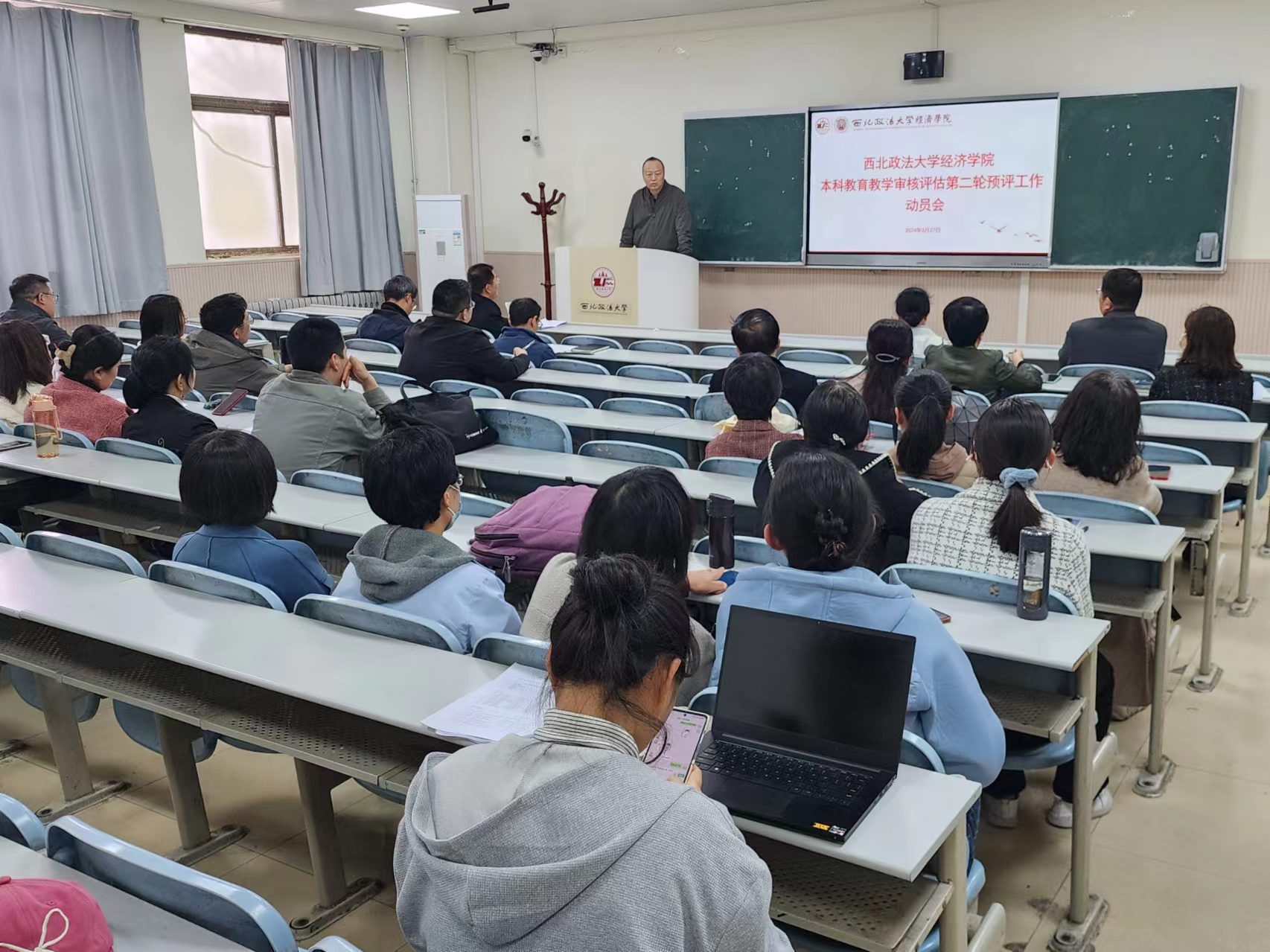 院长王胜利对第二轮预评估工作进行了具体部署,要求全院教师要严格工作纪律,切实增强责任感,并就评估工作的重点问题进行分析,提出具体工作要求,明确职责分工。他指出,要以此次评估为契机,进一步提升学院的本科教育教学质量;要以问题为导向,全面梳理教学工作中存在的不足,制定切实可行的改进措施;要加强沟通协作,形成工作合力,确保审核评估工作顺利进行。