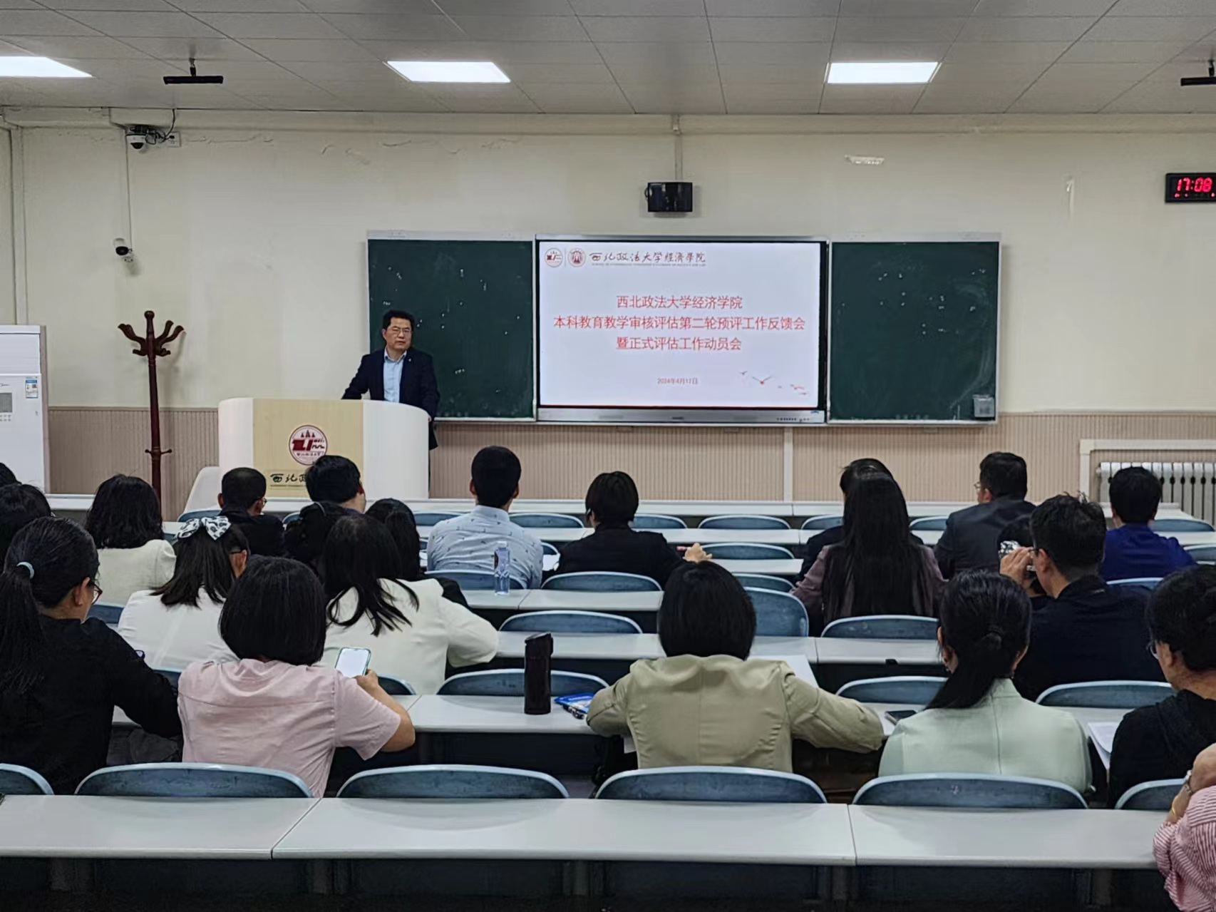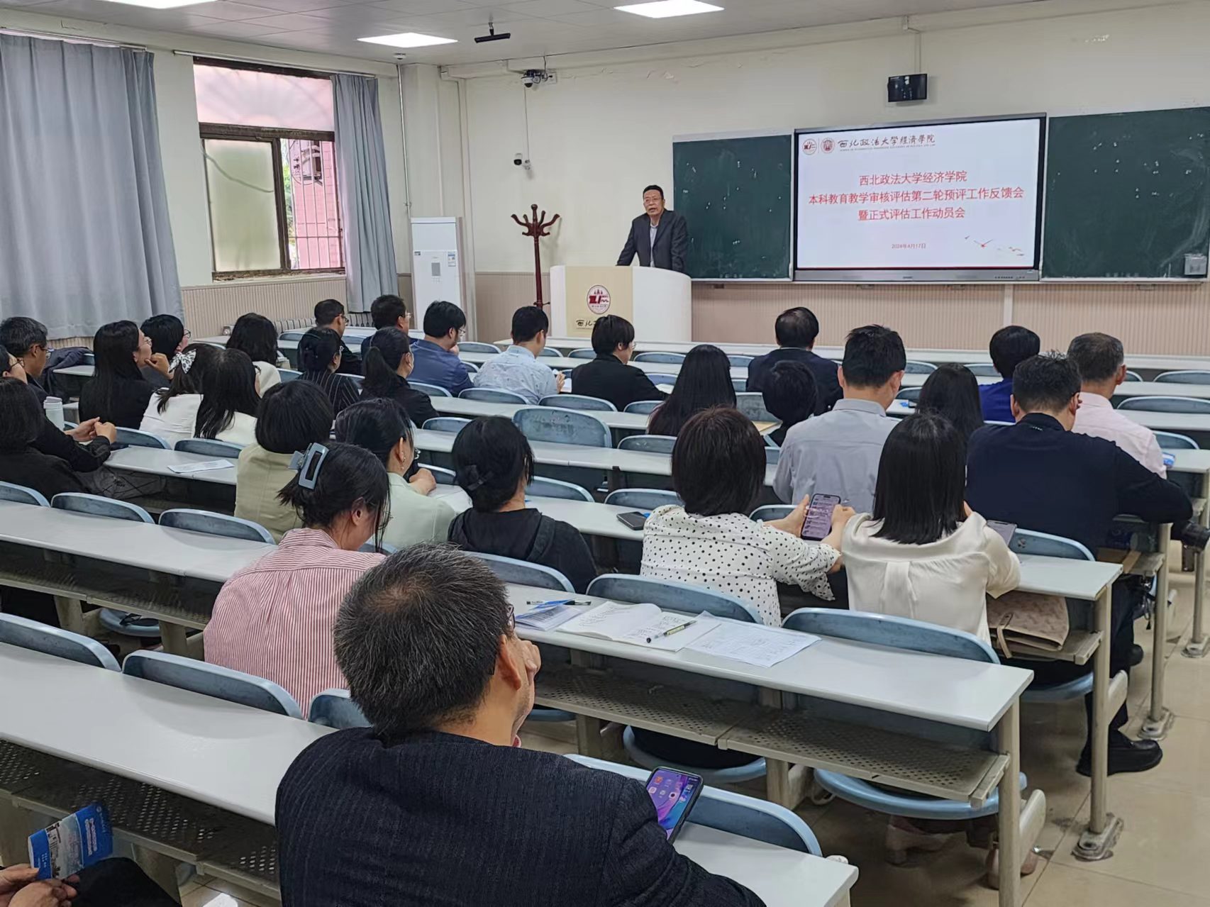 院长王胜利对正式评估工作进行动员,并对下一阶段的迎评工作作出部署。他强调,要充分认识到正式评估工作的重要性和紧迫性,全院师生务必高度重视,强化主体责任意识,严格要求,积极配合,确保评估工作的顺利进行。同时,他对下一步工作安排进行详细部署和分工,要求各位老师创新教学理念,加强课堂管理,改良教学模式,突出课程特色亮点。对迎评工作中发现的问题要做到见人见事见问题,要坚持以评促建、以评促改、以评促管、以评促强,提高人才培养质量,切实提升学院本科教育教学质量。