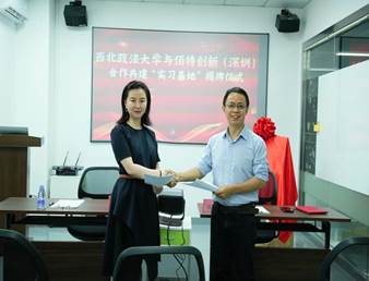 beat365在线唯一官网校方代表段琳老师与佰特创新罗绍元总经理为“实践基地”揭牌。