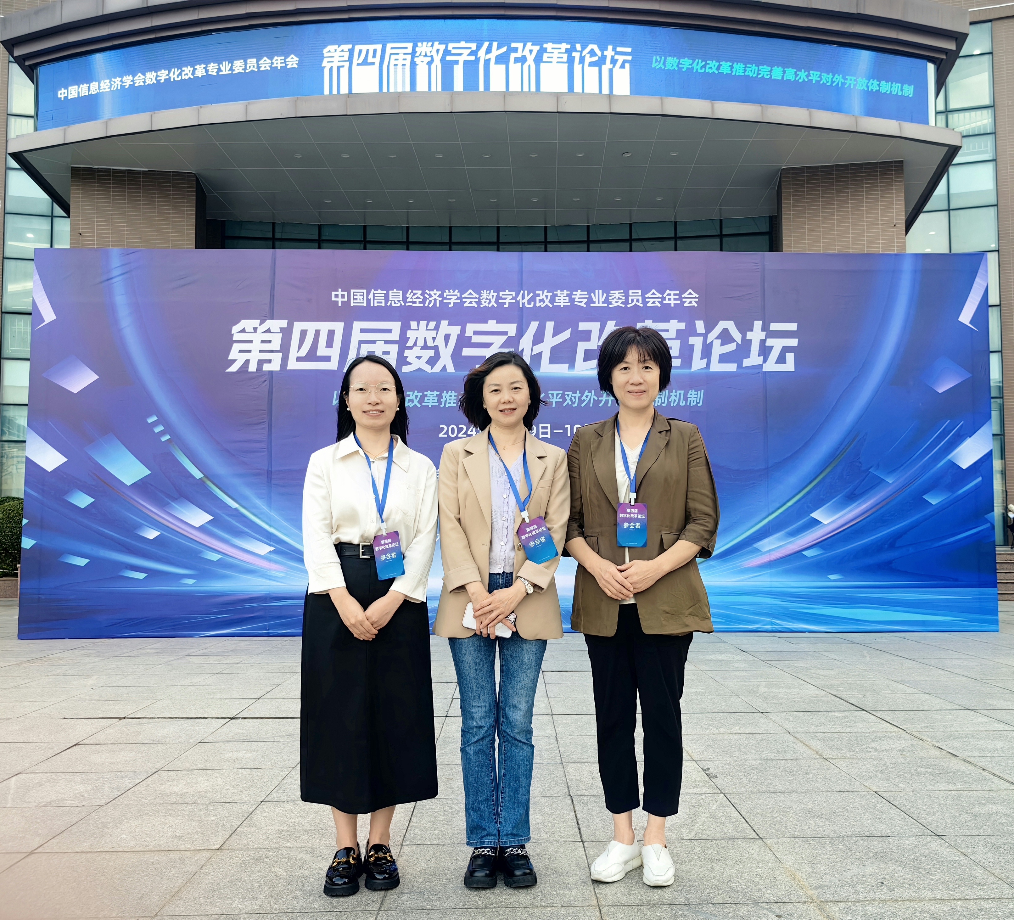本次会议聚焦数字化改革与高水平对外开放体制机制。11月10日上午是主旨演讲,下午是八个平行论坛。中国信息经济学会常务理事、福州外语外贸学院执行校长黄建平,中国信息经济学会副理事长、数字化改革专委会主任、浙江大学中国数字贸易研究院院长马述忠致开幕词。华南师范大学副校长王春超,中国社会科学院大学商学院副院长夏杰长,中国社会科学院大学应用beat365在线唯一官网执行院长倪红福,华东理工大学副校长阎海峰,浙江大学中国数字贸易研究院院长马述忠,福建米多多网络科技有限公司CEO邓海围绕“数字经济背景下的改革与发展”作主旨发言。国贸系主任王雯婧副教授在平行论坛作题为“多维融合培养经贸专业复合型创新人才”主题发言。侯颖怡、王雯婧和李隆玲三位老师在会上和与会专家进行了广泛地经验交流。