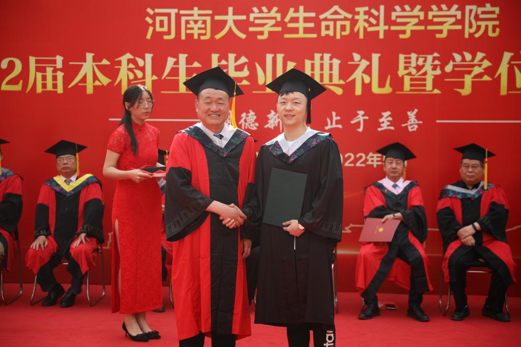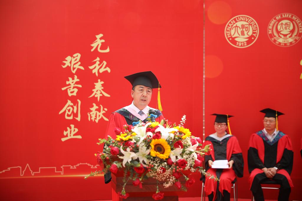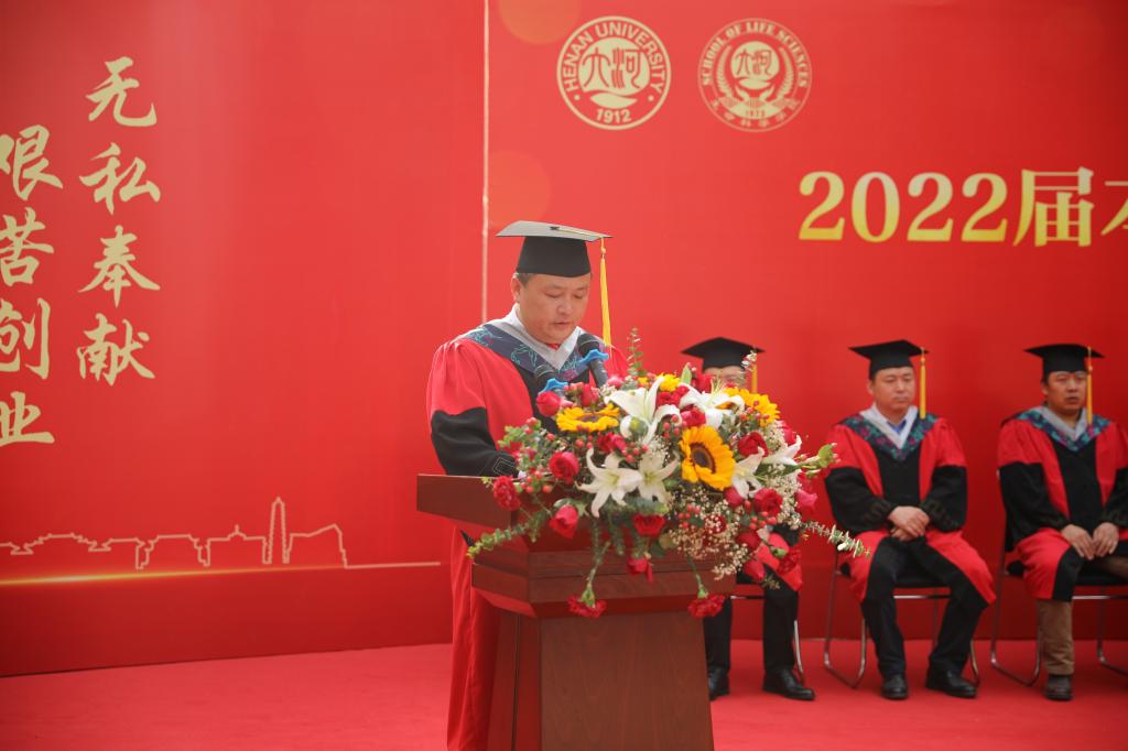 毕业是学生亲手酿的老酒,将甜美与苦涩定格在了青春最美的时刻,浅尝回忆,满是不舍。毕业生代表2018级生物工程专业李印深情回顾了四年的大学时光,青春的脚步留在校园的小路上,笑语欢歌珍藏在生科的晨昏中,衷心地感谢老师们的悉心培育。他表示,作为“双一流”建设高校毕业生和新时代青年,要主动承担历史使命和时代责任,牢记和弘扬百折不挠、自强不息;无私奉献、艰苦创业的新时期河大精神。“我们要牢记习近平总书记嘱托,做坚定的理想追求者、增强本领的奋进者、躬身实践的行动者和勇于担当的搏击者。”