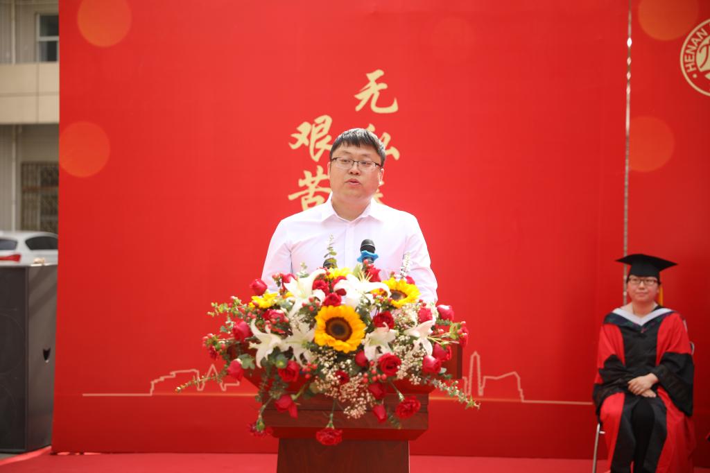 校园的花开得正美,清雅的芬芳中有一丝丝淡淡离愁;学院楼前的树正绿,蓊郁的绚烂中有一句句殷殷嘱托。教师代表、学院生物工程卓越工程师班班主任孙杨深情回忆起开满梓花儿的中州路、先闻湖中的黑天鹅、琴键楼下的匆匆身影、创业中心的美食以及生科牌啤酒,感情真挚地表达了对毕业生们的祝贺与不舍。他勉励毕业生们每一段旅程的终点,都是下一段旅程的起点,要始终不断奔跑;要珍惜时光,不负光阴;要坦然接受生活的变化;要脚踏实地,志存高远。他希望毕业生们纵然经历人世冷暖,回头笑容依然纯真温暖。