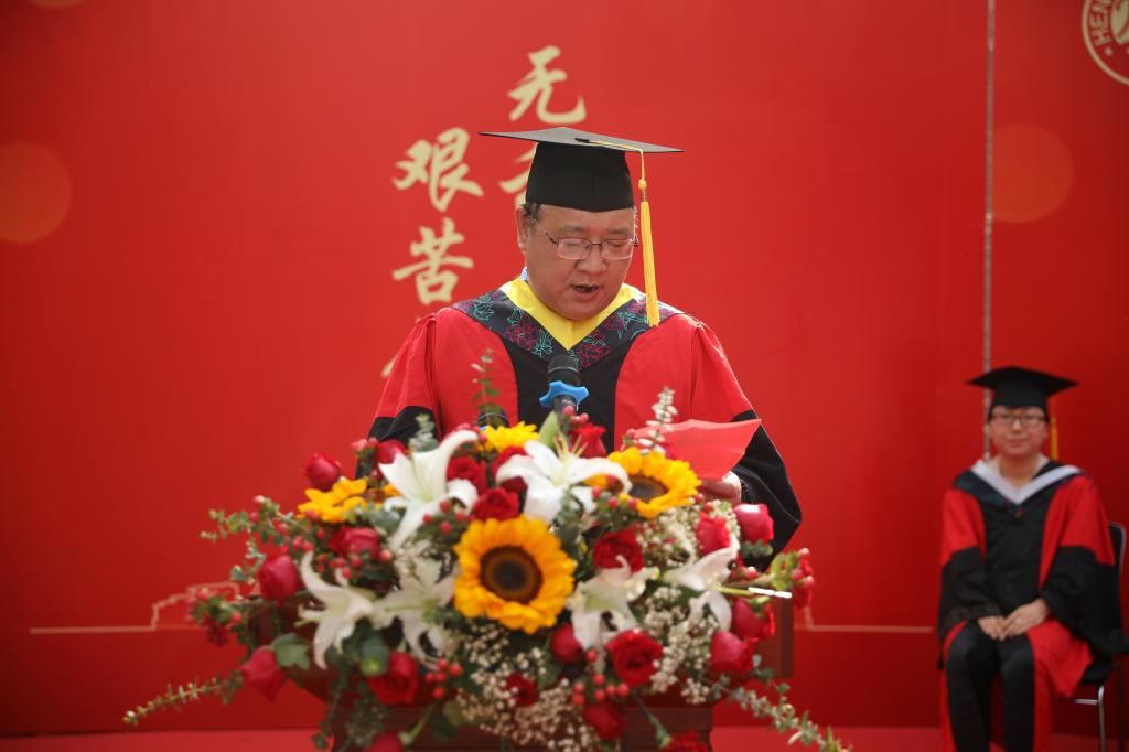 此去须怀报国志,不忘春风化雨情。学院党委书记吴建伟代表全院师生员工,向顺利毕业即将踏上人生新征程的毕业生们表示祝贺,并向悉心培养同学们的老师和家长表示感谢。离别之际,吴建伟深情寄语毕业生:把奋斗当幸福。习近平总书记指出,只有奋斗的人生才称得上幸福的人生。被称为“史上最牛创业团队”的中国共产党,无私奉献,艰苦创业30年进入“双一流”的生物学科以及入选教育部第二批“全国高校黄大年式教师团队”的逆境生物学教师团队,艰难困苦,玉汝于成,都是不懈奋斗得来的。把认真当习惯。科技人员通过手摇计算机完成我国第一颗原子弹的理论设计,宋纯鹏教授团队获得国家自然科学奖二等奖,王学路教授团队和张立新教授团队分别在顶尖学术期刊Science和Cell上发表的国际领先科研成果,靠的都是“认真认真再认真”的科学精神,要牢记“学无止境、境如生命”的生科精神,把严谨细致、一丝不苟的认真习惯养在平时。把善良当底色。“明德新民,止于至善”的校训是个人修身与社会责任合二为一所达到最完美的境界、最崇高的目标,生命科学本身也蕴含了善和爱,生命中有了善良,人生才能经常充满喜悦;生命中有了善良,人生才能幸福常在。他祝愿每位毕业生都能尊严地生活,有梦想、有情怀;都能诗意地生活,爱家庭、重情义;都能体面地生活,有健康、有财富。必赢国际437官网永远是同学们的心灵的家园和精神的港湾,希望毕业生们带着生科的爱和对生科的爱远行,常回家看看。
