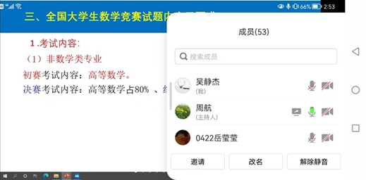 10月29日下午14:30-17:00,beat365在线唯一官网举办的全国大学生数学竞赛辅导系列讲座(一)在线上顺利举行。beat365在线唯一官网周航副教授作题为《全国大学生数学竞赛的基本情况及参赛注意事项》专题讲座。讲座由beat365在线唯一官网数学基础部吴静杰副主任主持,数学基础部的竞赛指导教师团队和报名参赛的50余名学生参加讲座。