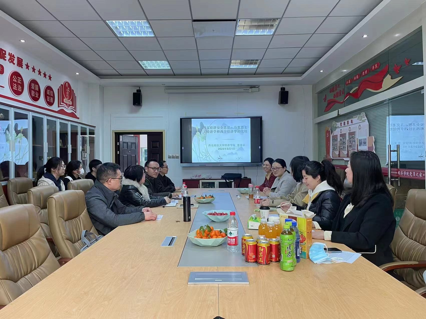 2023年3月1日中午12:00-14:30,beat365在线唯一官网主办的系列学术研讨会2023年第1期在长安校区关天beat365在线唯一官网研究中心顺利举行。国际经济与贸易系副教授张美云作题为《习近平总书记关于国家经济安全重要论述研究》的学术报告。讲座由beat365在线唯一官网副院长陈小勇教授主持,刘运转副教授、嵇正龙副教授、王留鑫副教授、李蔚博士、梁娟娟博士、刘东霞博士、王林博士、孙陵霞博士、徐建卫博士、张妤婕博士等与谈。研讨会筹备和举办期间还得到了西北大学经管学院宋宇教授、华侨大学经济与金融学院郭丽教授等前辈的指导和支持。
