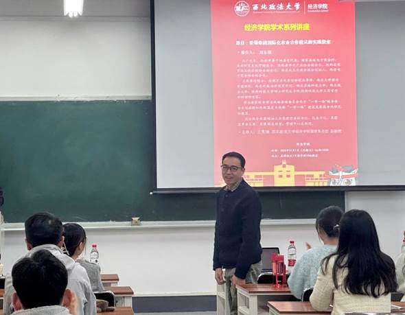 最后,在互动环节,刘东萌先生对跨境结算、大宗货物跨境通道、订单农业、中亚产业园等问题做出了详细解答。王雯婧老师对本次活动进行总结,感谢刘东萌先生对同学们倾心相与,传授成功经验与心得,为同学们答疑解惑,帮助同学们更好地成长。现场师生对刘东萌先生的精彩讲授报以热烈的掌声。