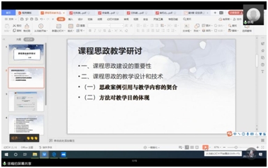 最后,全体教师进行了交流与讨论。通过对案例的学习以及交流和探讨,老师们对课程思政有了全新的认识,对如何在课程中设计课程思政内容也有了更多的思路和方法。