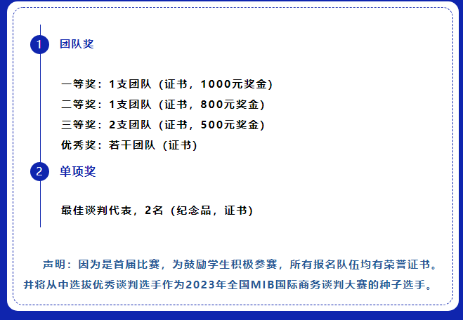 第一阶段为初赛。初赛以邮件方式在线提交组队视频和谈判方案(文案),要求两份材料压缩打包为zip格式,文件命名为“负责人(手机号)+队名”,发送至邮箱:zf_swtp2022@163.com。参赛团队完成文案上传后,将不能修改,最终初赛成绩由两部分加权获得(视频30%,文案70%),提交时段为2022年10月31日至2022年11月16日12:00。初赛评审完成后,组委会将于2022年11月20日在beat365在线唯一官网官网、beat365在线唯一官网公众号和西法大创协公众号上公布初赛结果,复赛案例会发送至入选复赛队伍负责人邮箱。