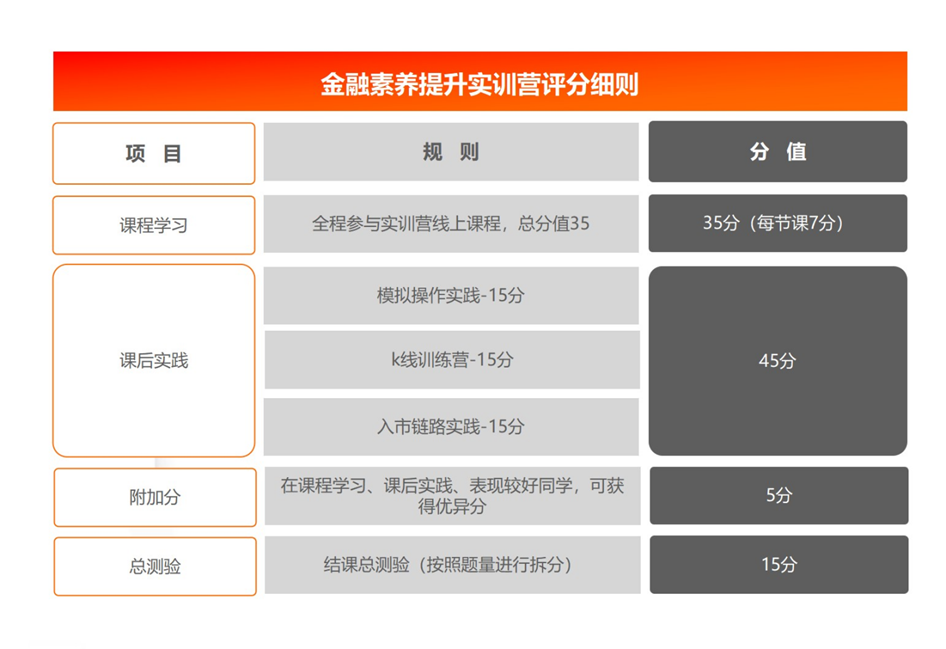 金融素养提升实训营评分细则:
